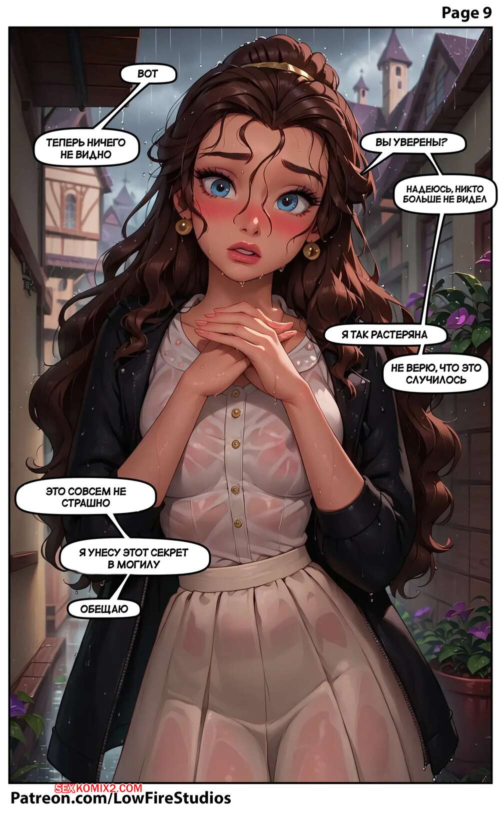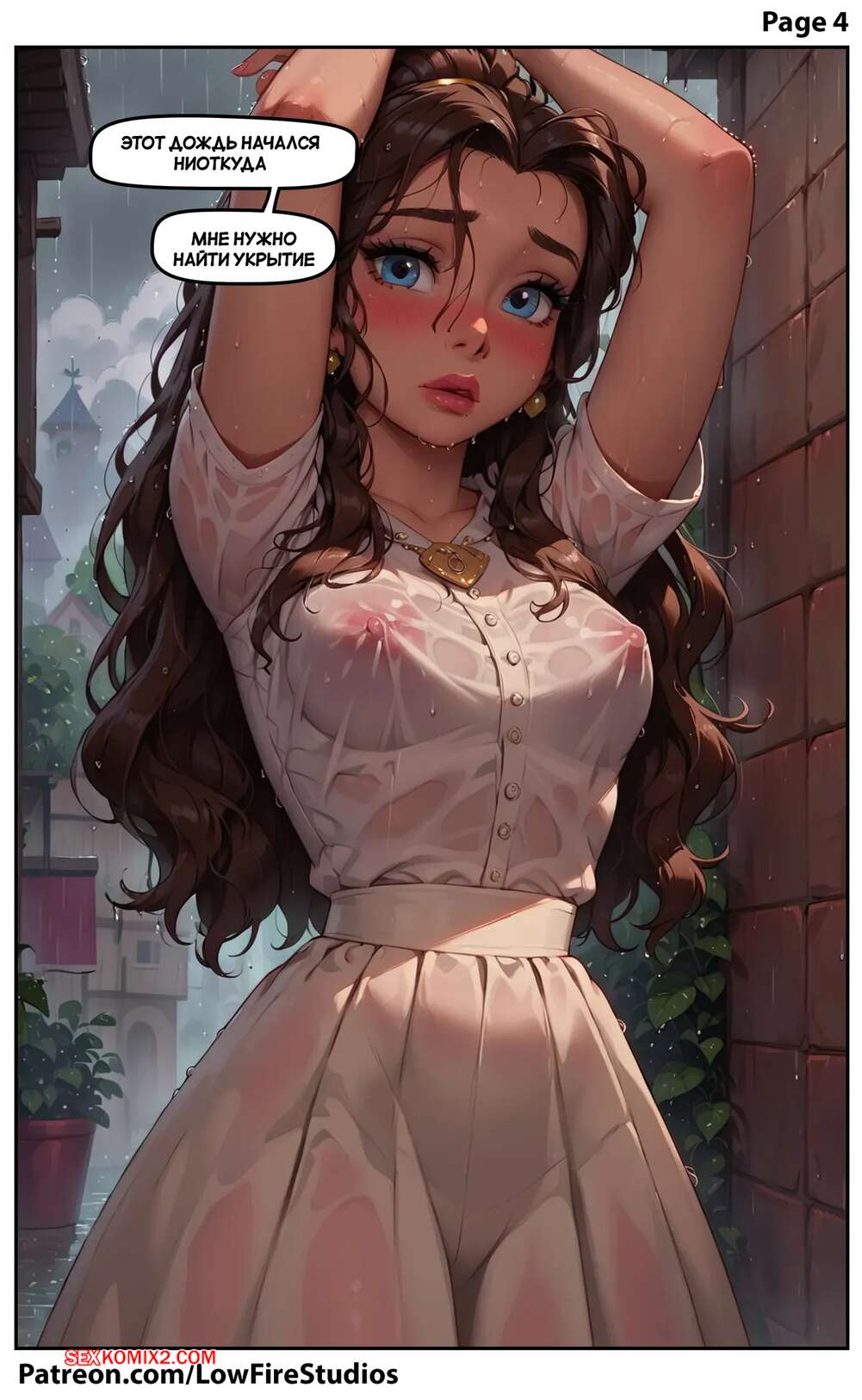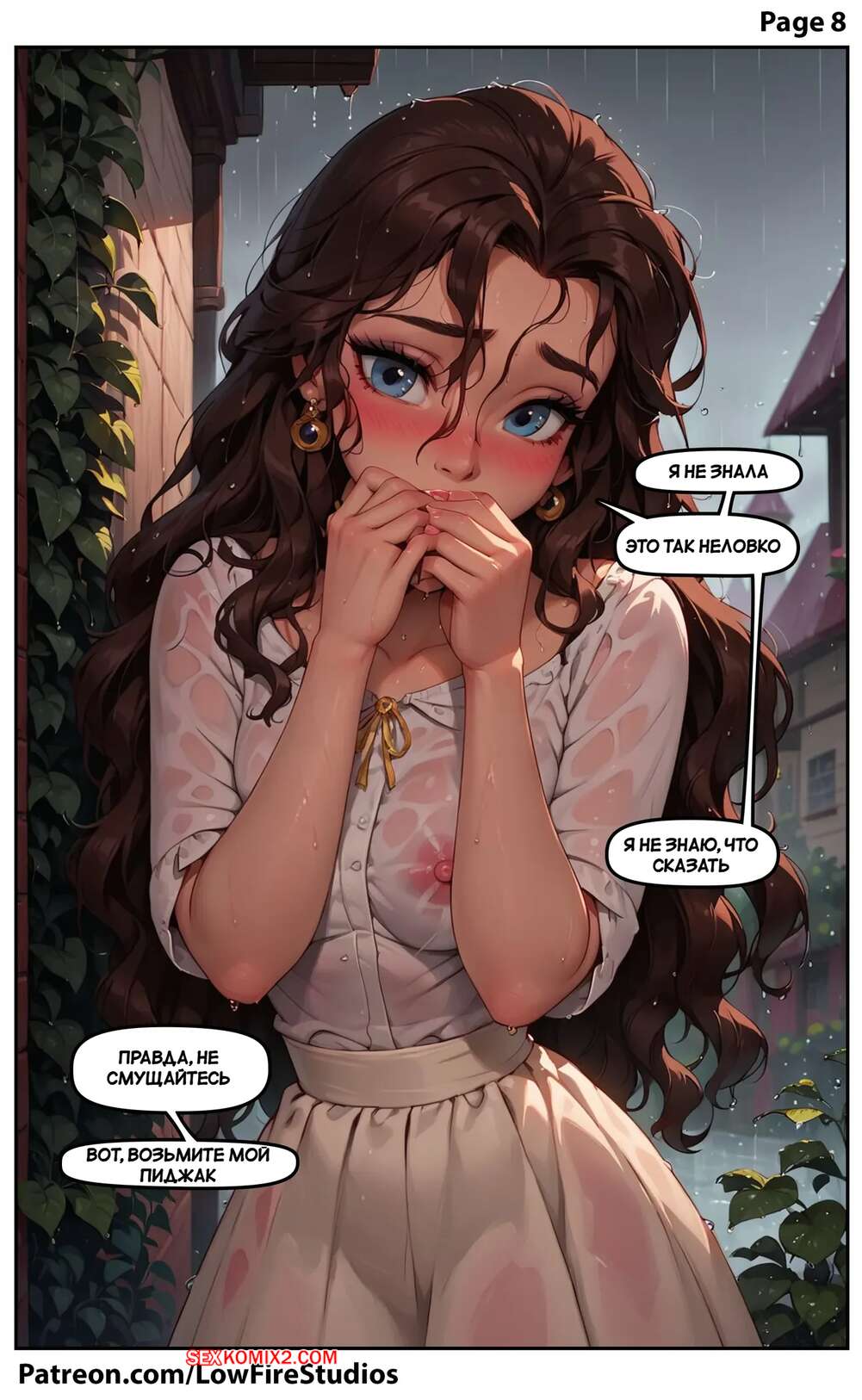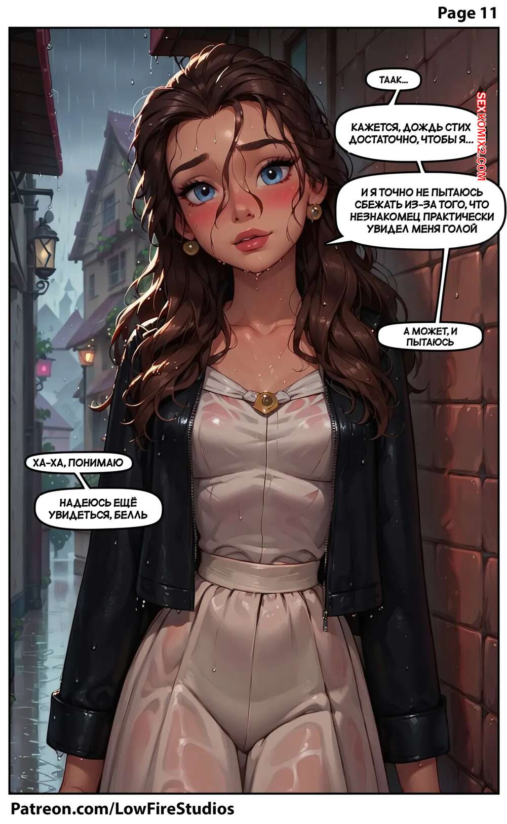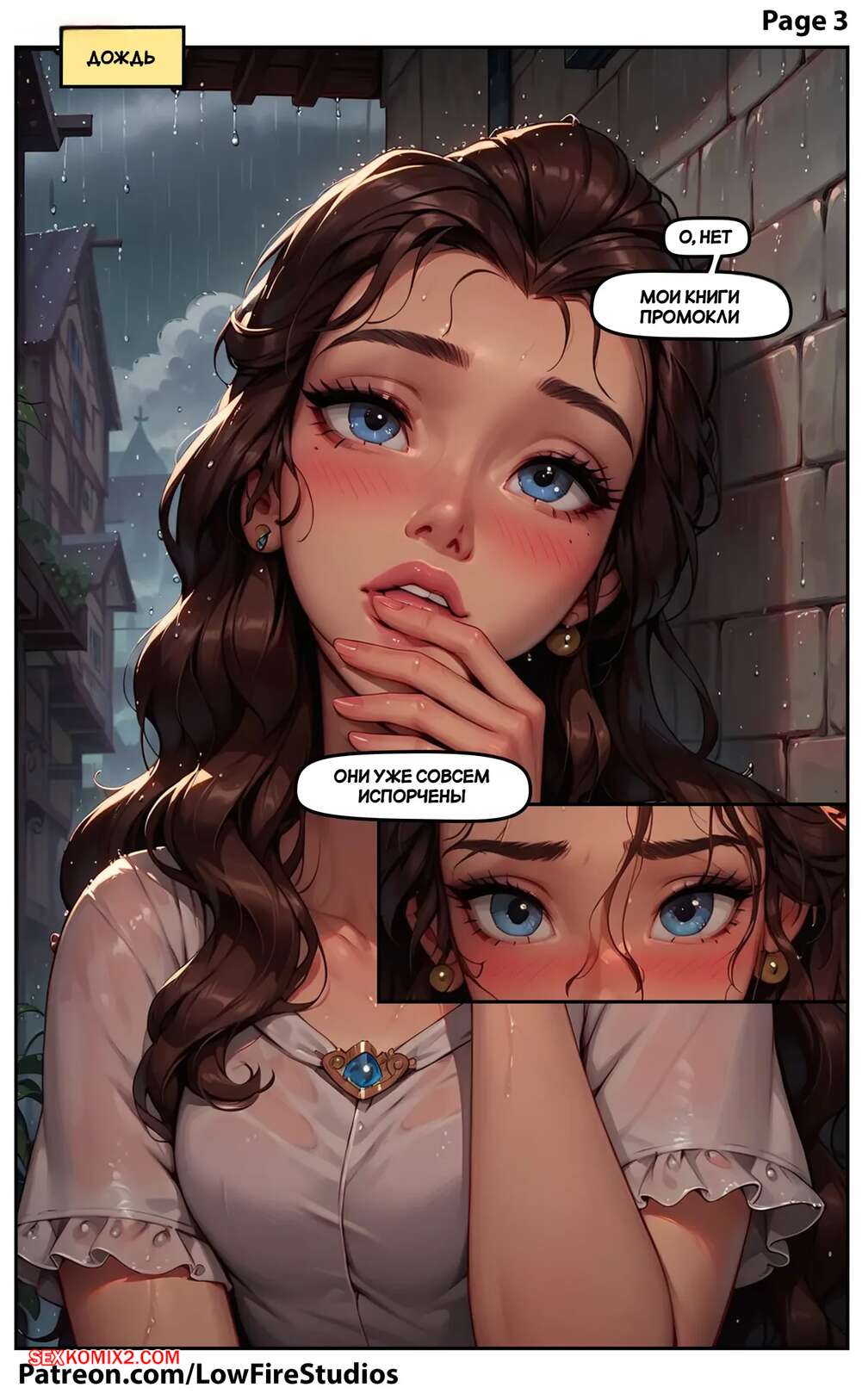 Порно комикс Внезапное купание Белль. Belles Sudden Soak. LowFireStudios. Красотка попала под дождь и парень одолжил ей свой пиджак, чтобы она могла добраться до дома. Спустя несколько дней парень пришел за пиздажком, а девушка решила его отблагодарить как следует и дала трахнуть себя.