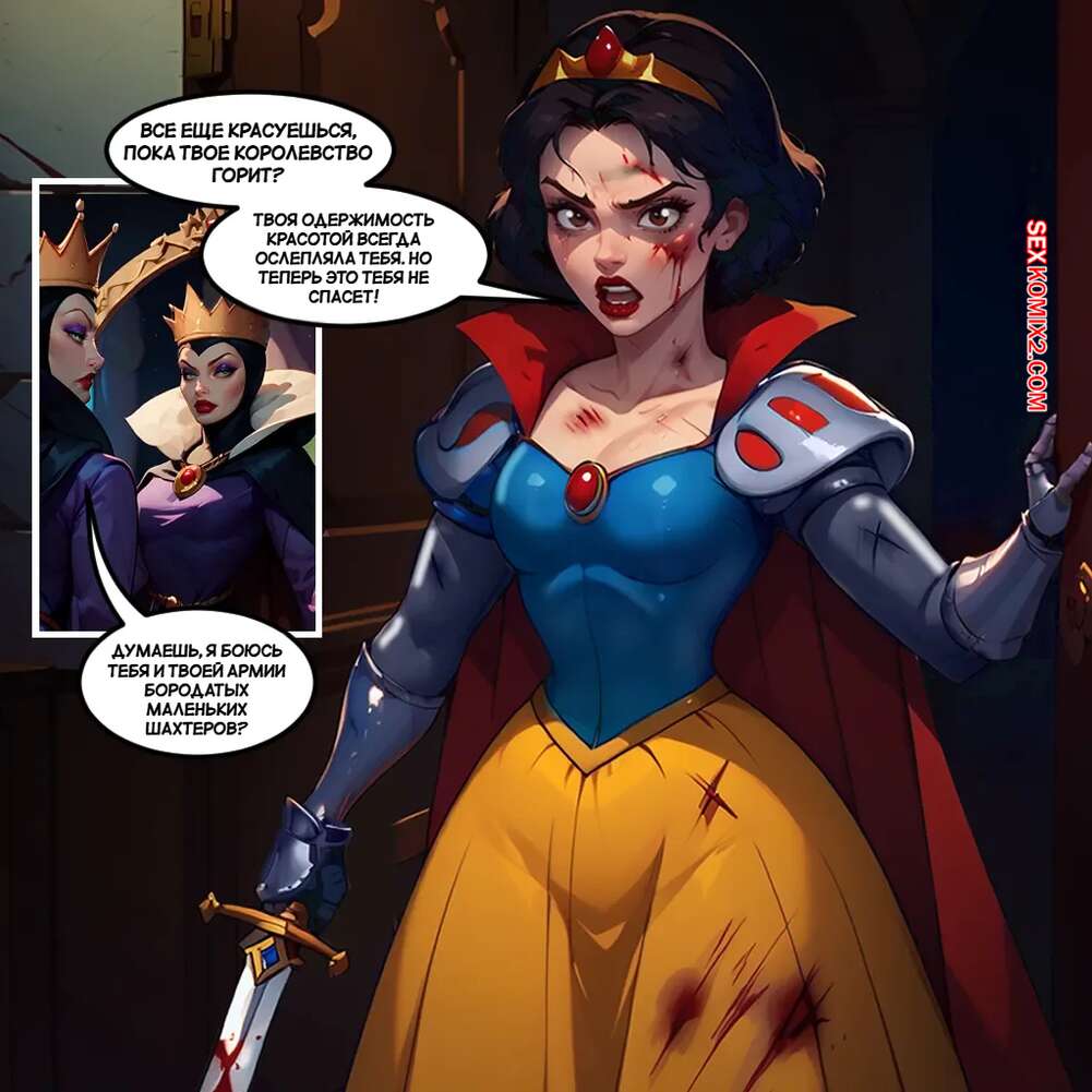 Порно комикс Месть Белоснежки. Snow Whites payback on the Evil Queen. Electrickink. Белоснежка наконец получила возможность отомстить злой королеве. Он держит милфу в темнице, после чего хорошенько шлепает ее задницу и трахает своим страпоном, заставляя кричать суку.