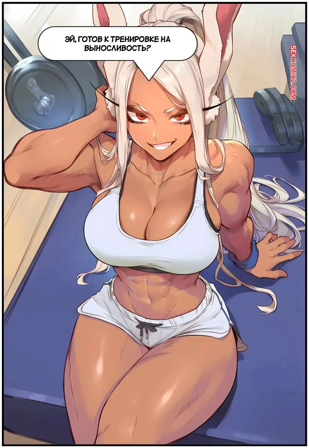 Порно комикс Академия. Деку и Мирко. Deku x Miruko. AKSN. Мирко и Деку тренировались в спортзале и блондиночка предложила парню повеселиться. Она встала на колени и отсосала хуй друга, после чего дала ему выебать свою пизденку и кончить в нее.
