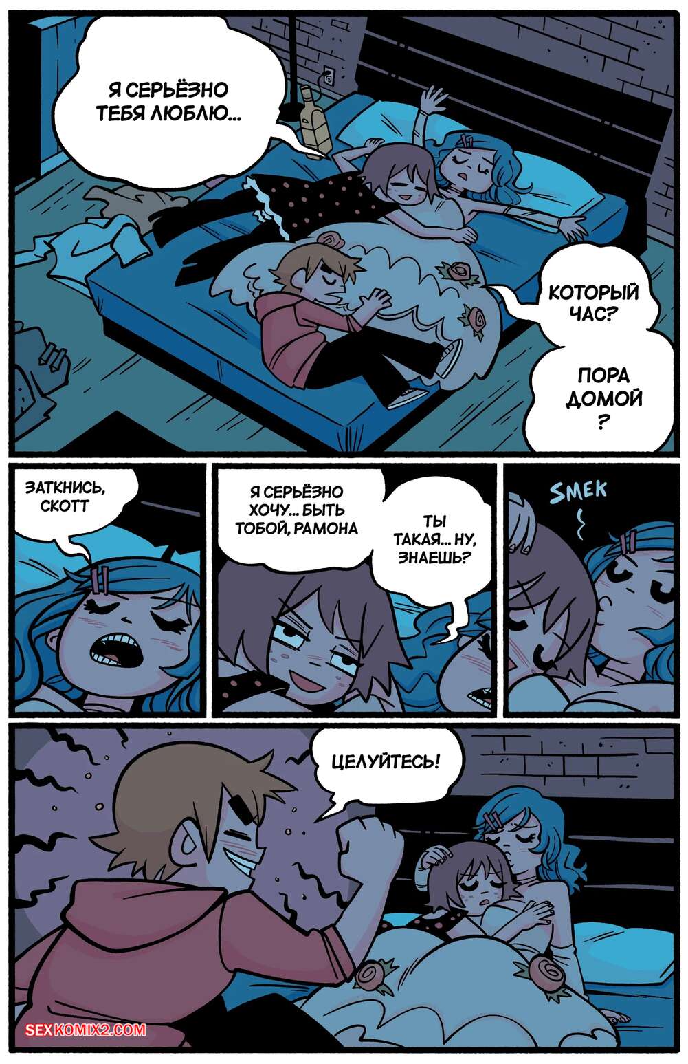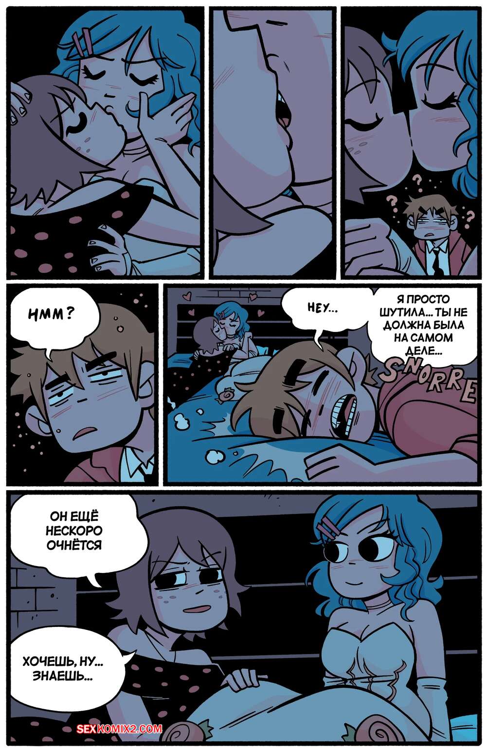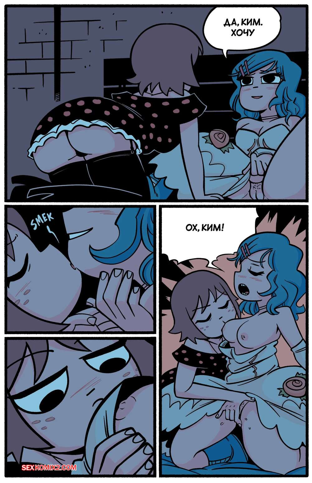 Порно комикс Scott Pilgrim. Ким и Рамона. Kim x Ramona. bonerbob. Скотт лег спать, а его горячие подруги решили воспользоваться моментом. Девушки стали страстно целоваться, после чего разделись и занялись лесбийской еблей.
