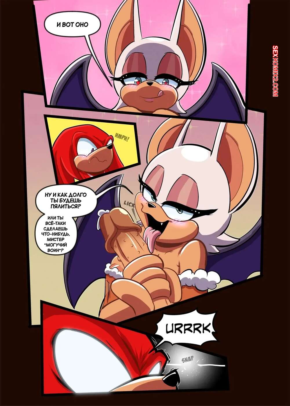 Порно комикс Соник. Руж и Наклс. Rouge And Knuckles. CorytheC. Красотка Руж заигрывает с Наклзом и у парня быстро встал хуй. Он сует член в рот девушке и дает у себя отсосать, после чего хорошенько трахает ее пизденку, заставляя девушку кончить.