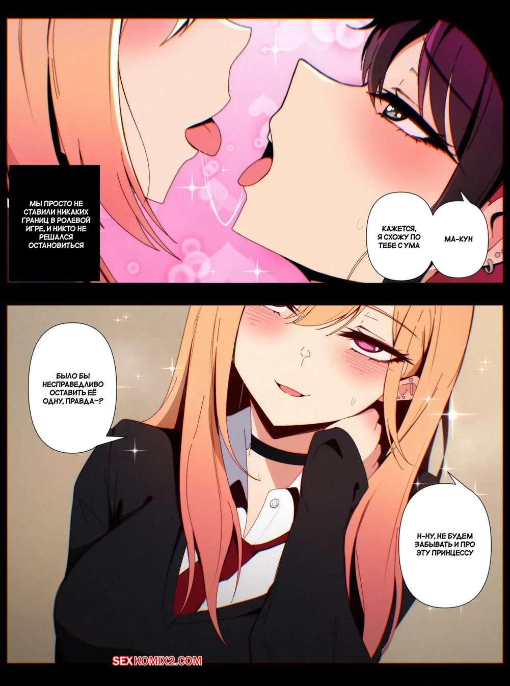 Порно комикс Марин Годжо. Marin Gojo. Niui. Две горячие подруги заигрывают с парнем, желая пошалить. Красотки разделись и стали тереться о член парня своими попками, после чего дали ему себя выебать и кончить в них.