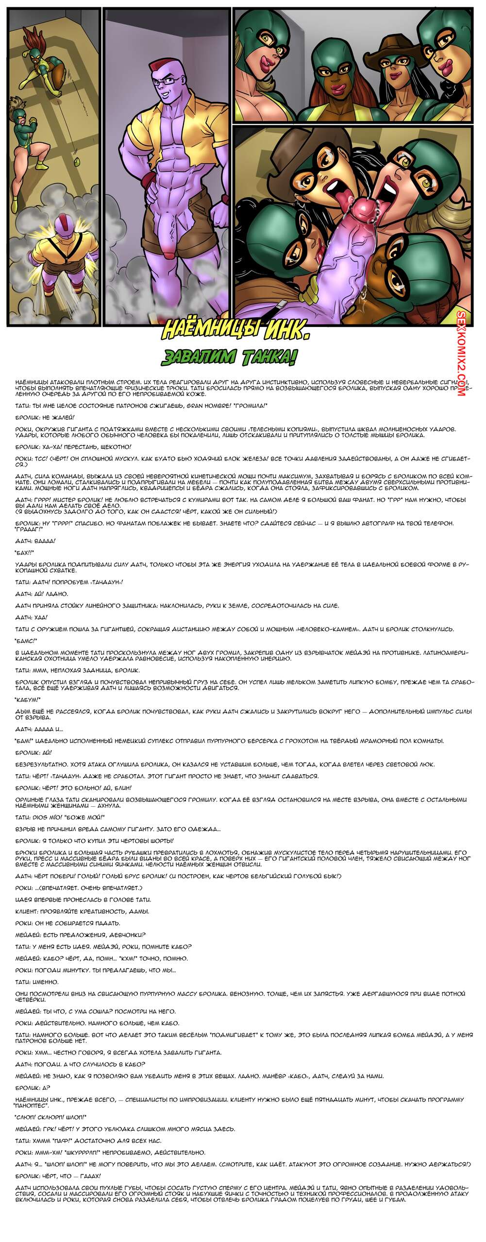 Порно комикс Геройские Истории. Наёмницы ИНК против Брюса Бролика. Rabies T Lagomorph Сисястые девушки не могут устоять перед огромным членом фиолетового парня. Они встают перед ним на колени и глубоко заглатывают его хуй, после чего дают себя выебать по очереди.