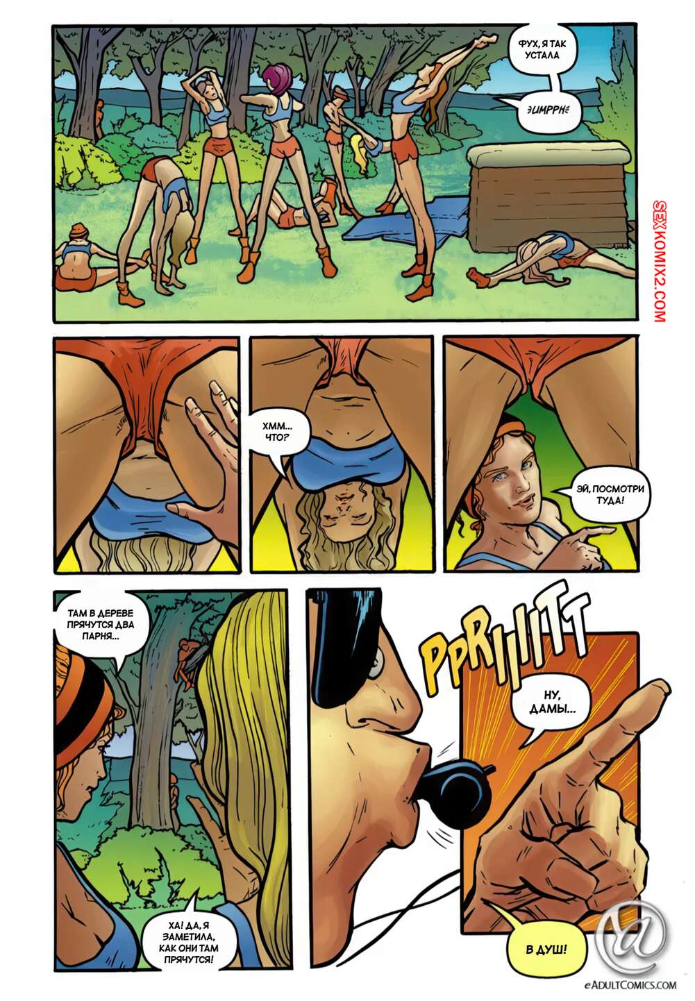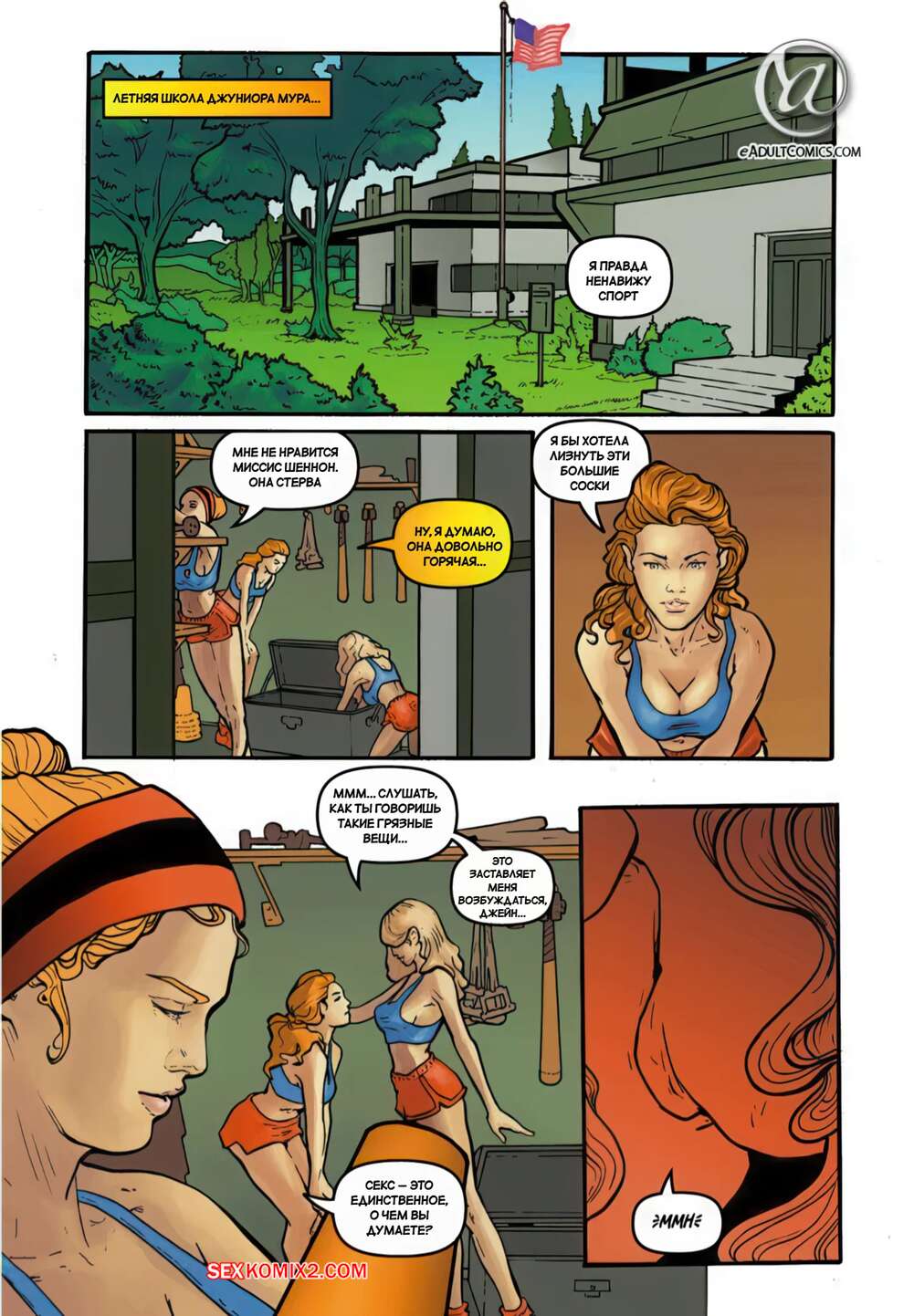 Порно комикс Месть школьниц. Часть 4. Schoolgirls Revenge. Yair Herrera Красотки раздеваются в раздевалке после тренировки и решают повеселиться. Они страстно целуются, после чего занимаются горячей лесбийской еблей, получая огромное удовольствие.