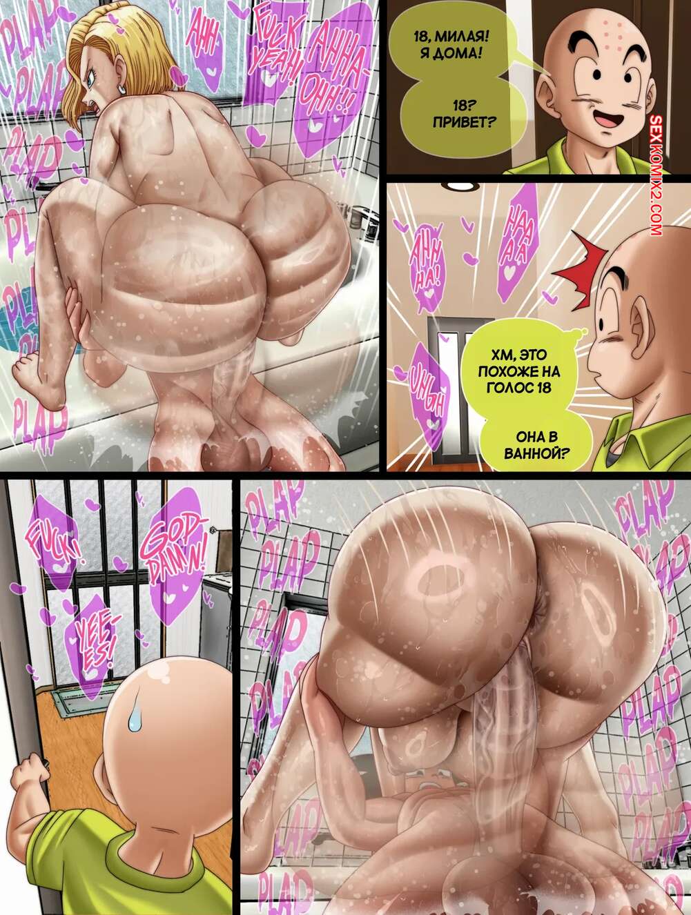 Порно комикс Dragon Ball. Время купания с 18. Bath Time with 18. Doompypomp. Андроид 18 пошла принять ванну и позвала молодого паренька с собой. Там красотка стала дрочить его хуй сиськами, после чего оседлала парня и дала ему себя выебать.