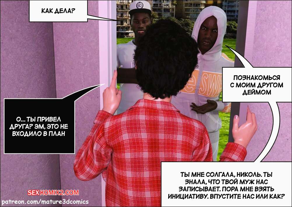 Порно комикс Подозрения и измены. Часть 6. Blame The Virus. Mature3DComics Николь пригласила Террела и он пришел к ней вместе со своим другом. Милфа отсосала хуи черных парней и дала им себя выебать во все дырочки, пока Ной наблюдал за происходящим и дрочил.