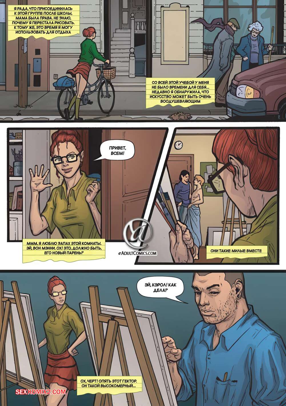 Порно комикс Месть школьниц. Часть 8. Schoolgirls Revenge. Yair Herrera Парень пришел попозировать голым перед рыжей милфой и быстро заметил ее похотливые взгляды. Они отправились в уединное место, где красотка отсосала хуй парня и дала выебать свою попку.