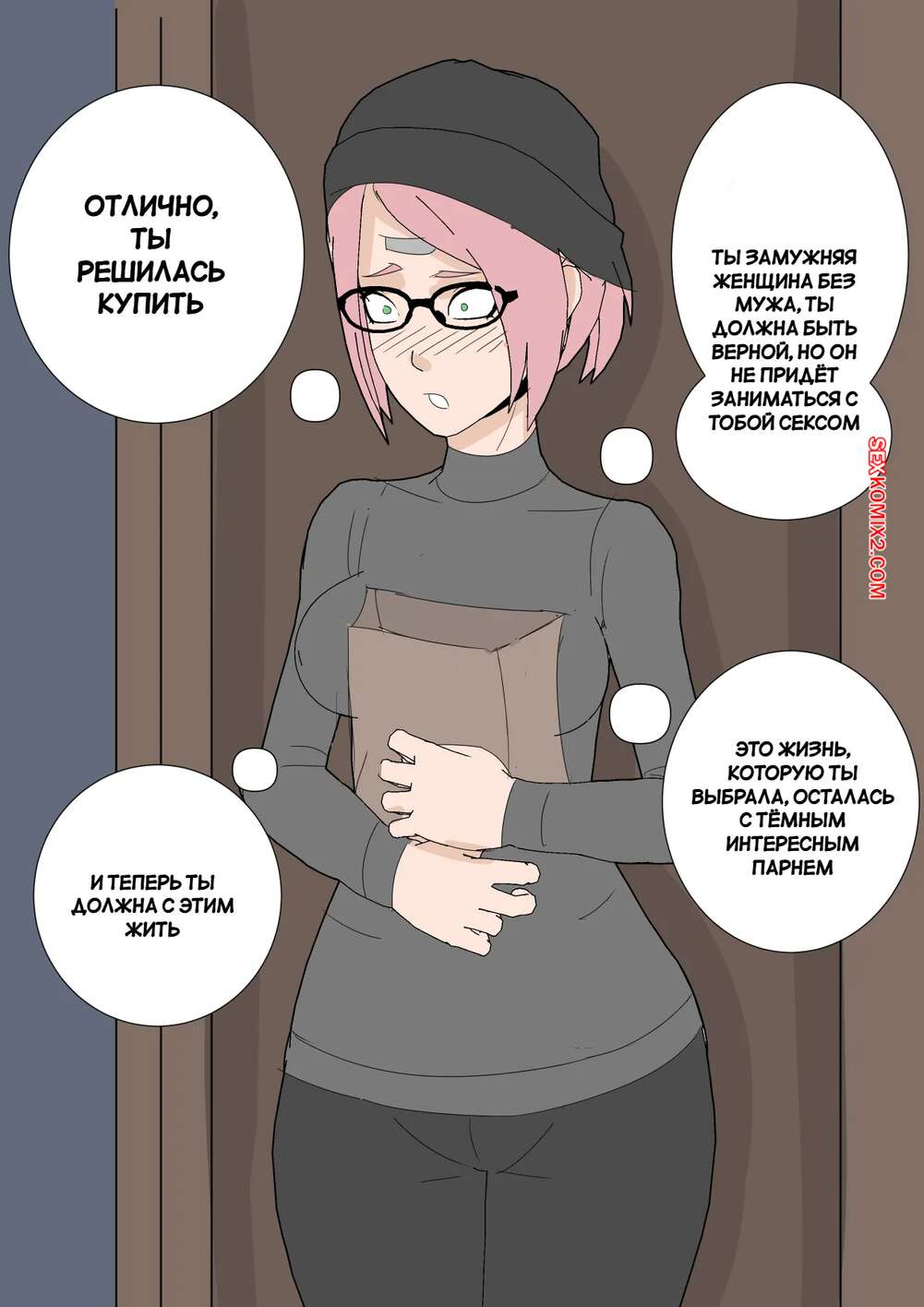 Порно комикс Наруто. Mangekyou. Часть 3. Drnihilismo Цунаде напилась и отправилась в гости к Сакуре. Она стала приставать к девушке и соблазнять ее, после чего разделась и продемонстрировала анальную пробку в своей заднице.