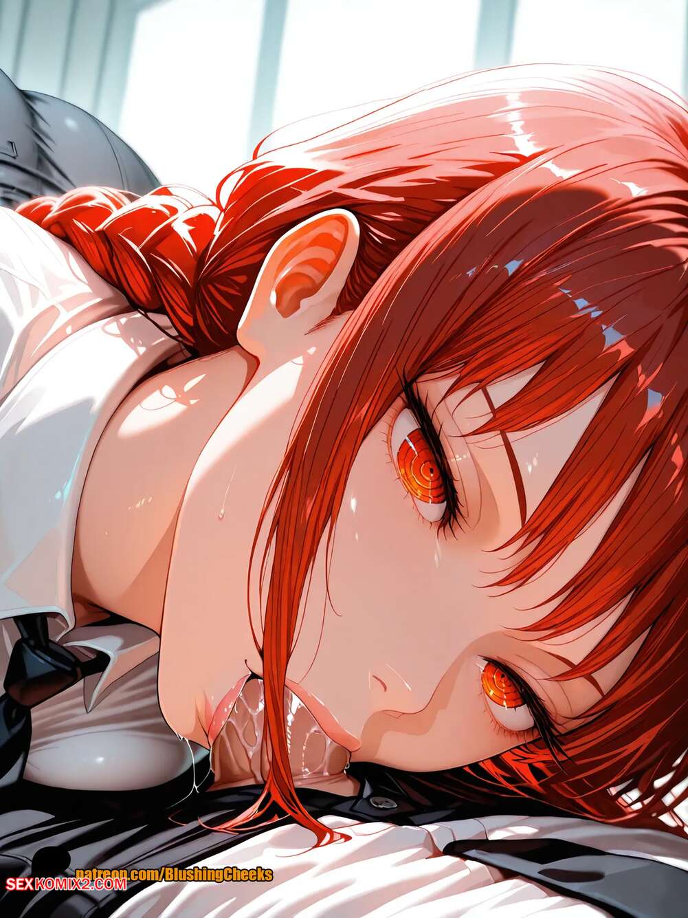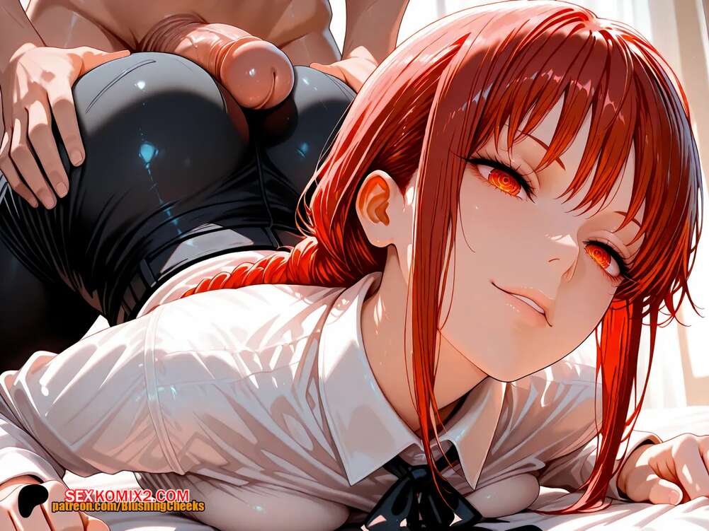 Порно комикс Makima. Chainsaw Man. BlushingCheeks Красотка Макима позирует перед своим дружком, желая повеселиться. Девушка встала на колени и отсосали большой хуй парня, после чего раздвинула ножки и дала выебать свою попку.