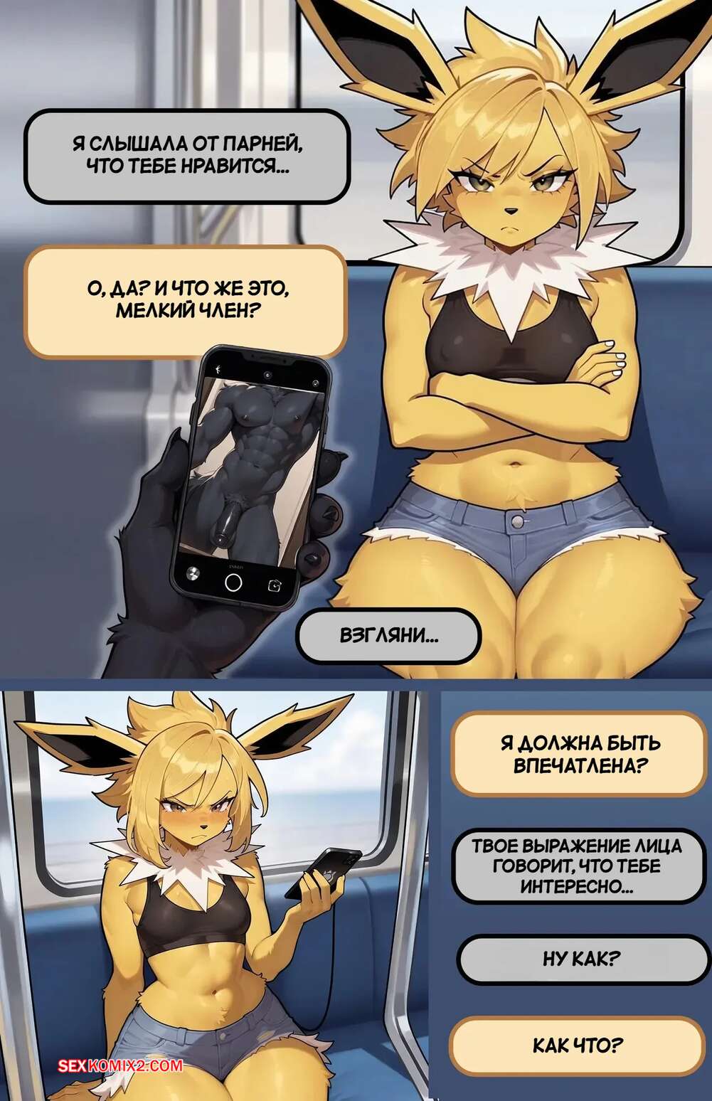 Порно комикс Pokemon. Сестры Иви. Часть 3. The Eevee Sisters. Doctor Pibby Парень ехал в метро с горячей девушкой покемоном и решил с ней пошалить. Он достал член и дал красотке у себя отсосать, после чего она встала раком и дала себя выебать.