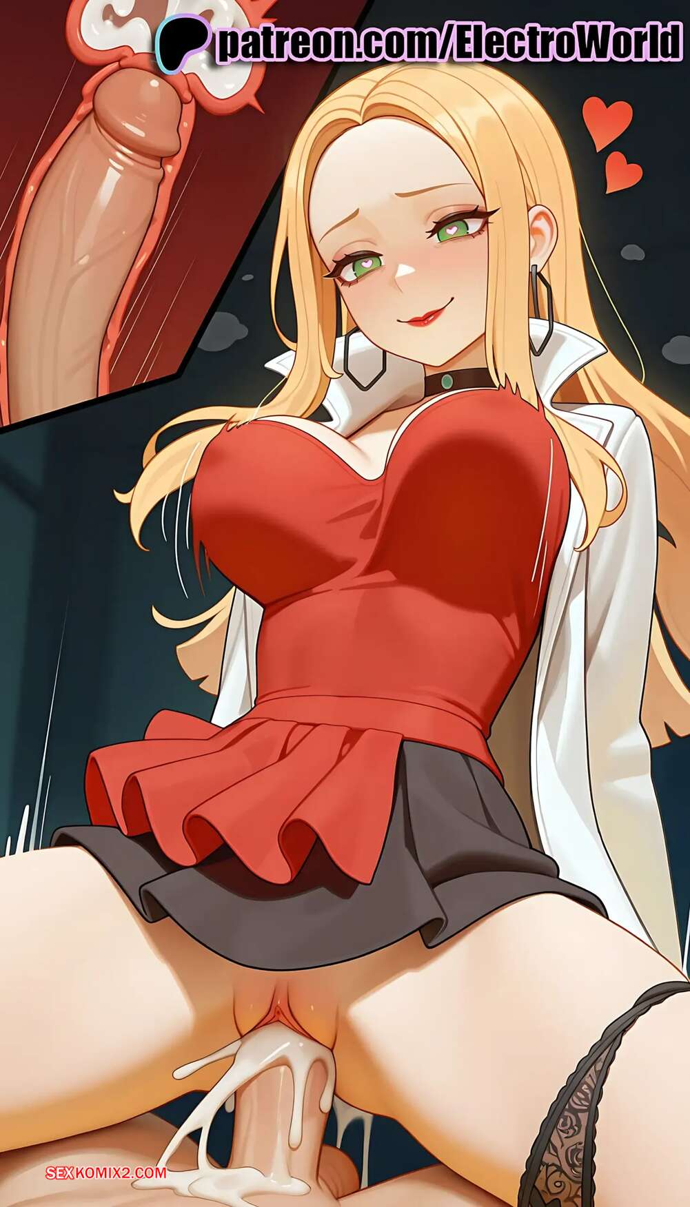 Порно комикс Oleana. Pokemon. ElectroWorld Горячая блондинка очень возбуждена и хочет секса. Она позирует перед своим дружком и соблазняет его аппетитными формами, после чего раздвигает ножки и дает себя выебать.