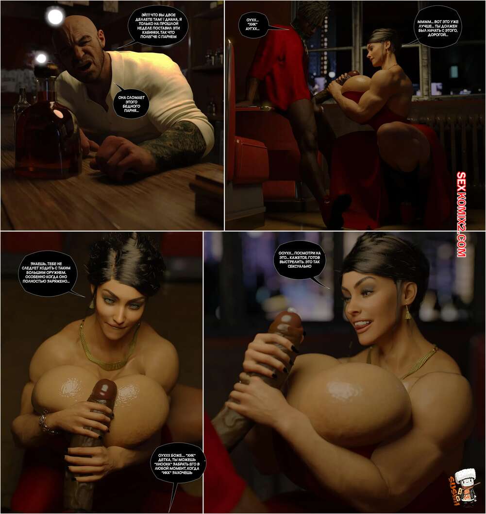 Порно комикс Амазонское чудо. Amazonian Wonder. GashousesushiArt. Горячая милфа отдыхала в баре, где разговорилась с темнокожим парнем. Она встала на колени перед ним и стала сосать хуй парня, после чего дала себя выебать во все дырочки.