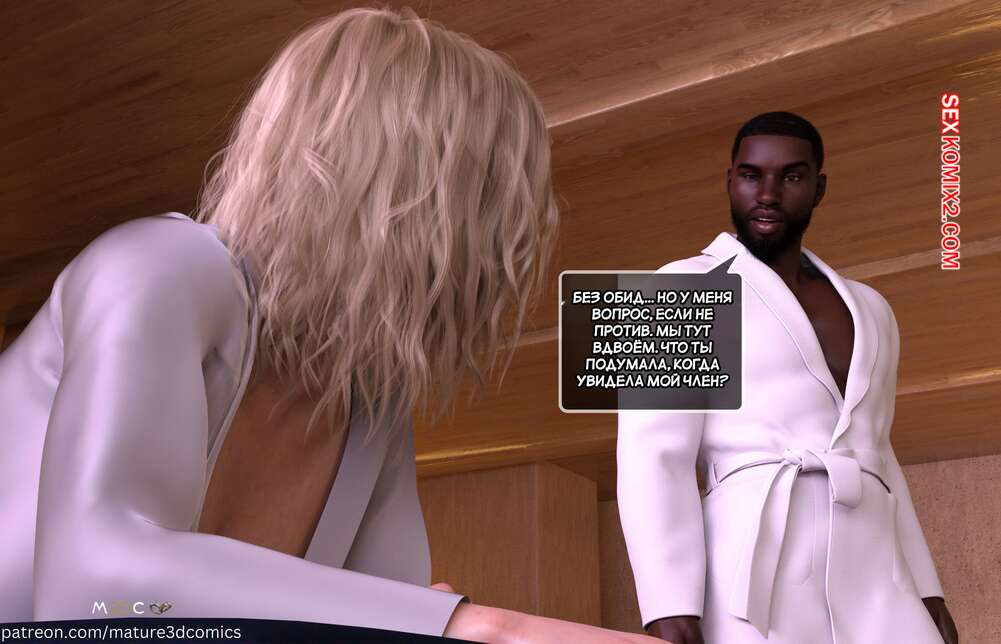Порно комикс Грязный сосед. Часть 3. Naughty Neighbor. Mature3DComics Горячая милфа решила расслабитсья и пошла на массаж, где ее массажистом оказался темнокожий сосед. Он заметил неловкость у красотки и достал перед ней свой член, соблазняя ее на трах.