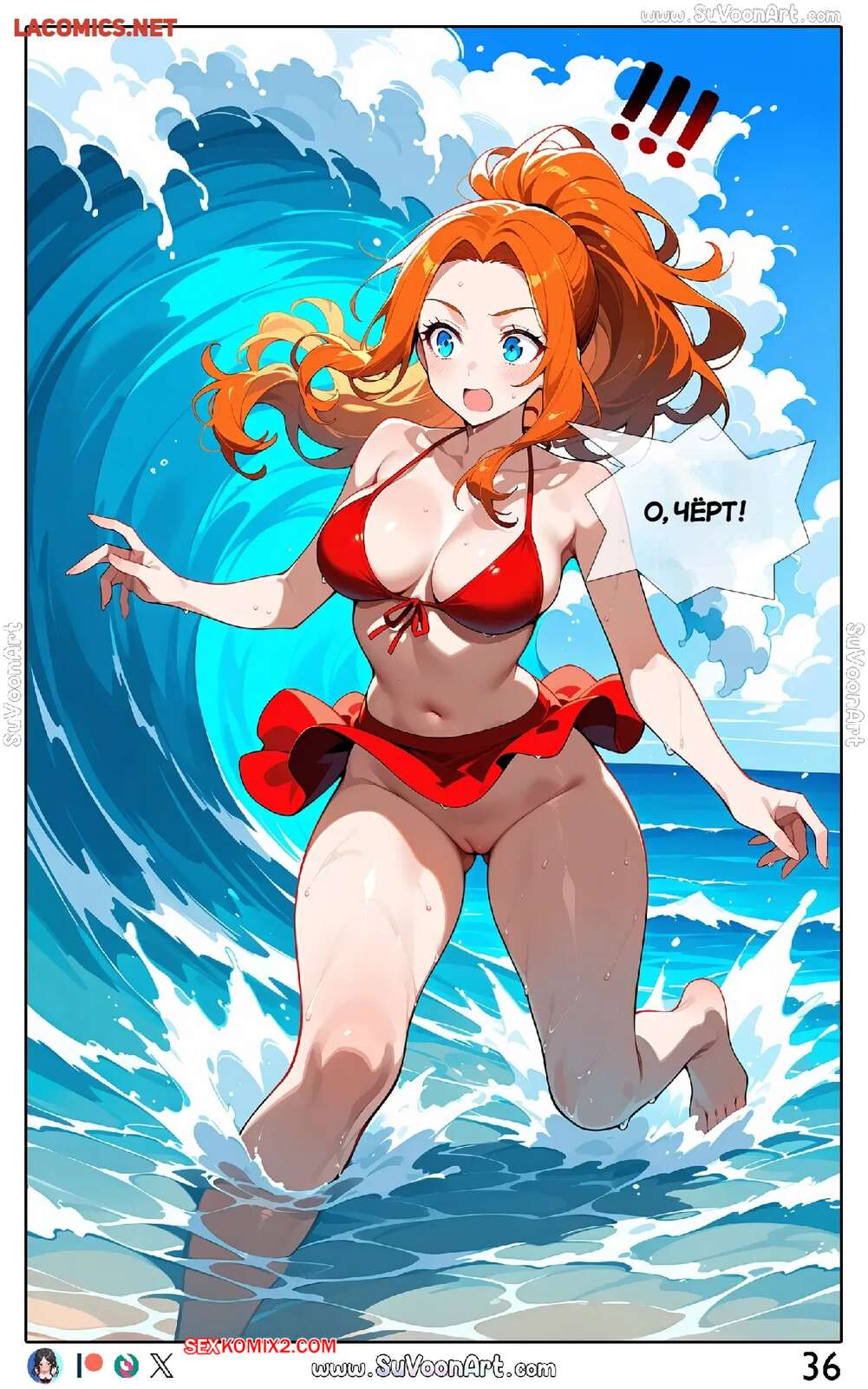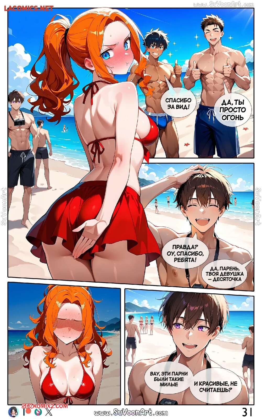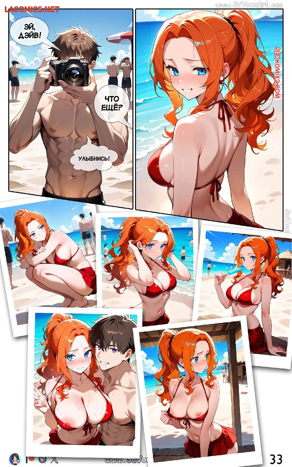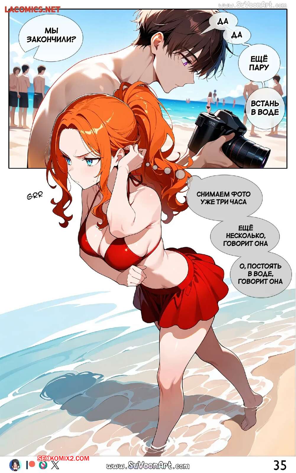Порно комикс Другая сторона. Часть 2. The Other Side. SuVoonArt. Рыжая красотка пошла на пляж в откровенном купальнике, где быстро собрала на себе взгляды парней. Девушка почувствовала сильное возбуждение и потащила парня в уединенное место, где стала ласкать свою пизденку.
