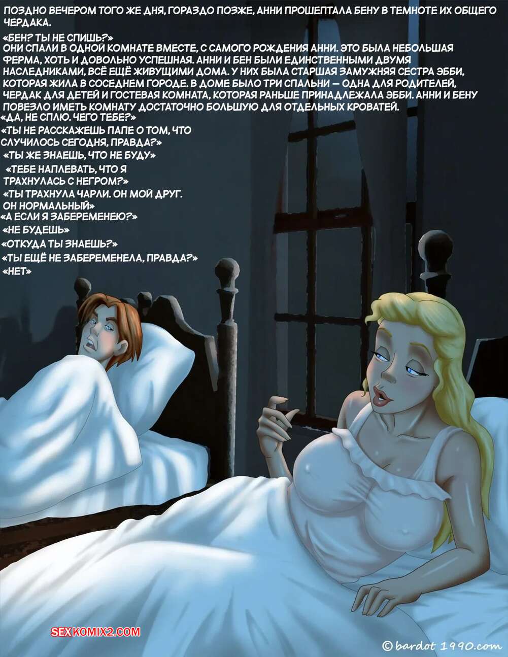 Порно комикс Однажды на юге. Часть 3. Once Upon a Time in the South. Bardot1990 Горячая блондинка не могла уснуть ночью и позвала парня к себе в постель. Он не стал долго думать и достал свой твердый член, чтобы выебать пизденку красотки.