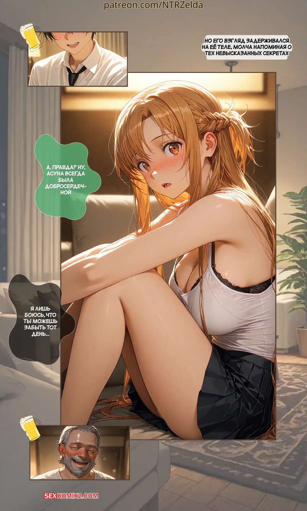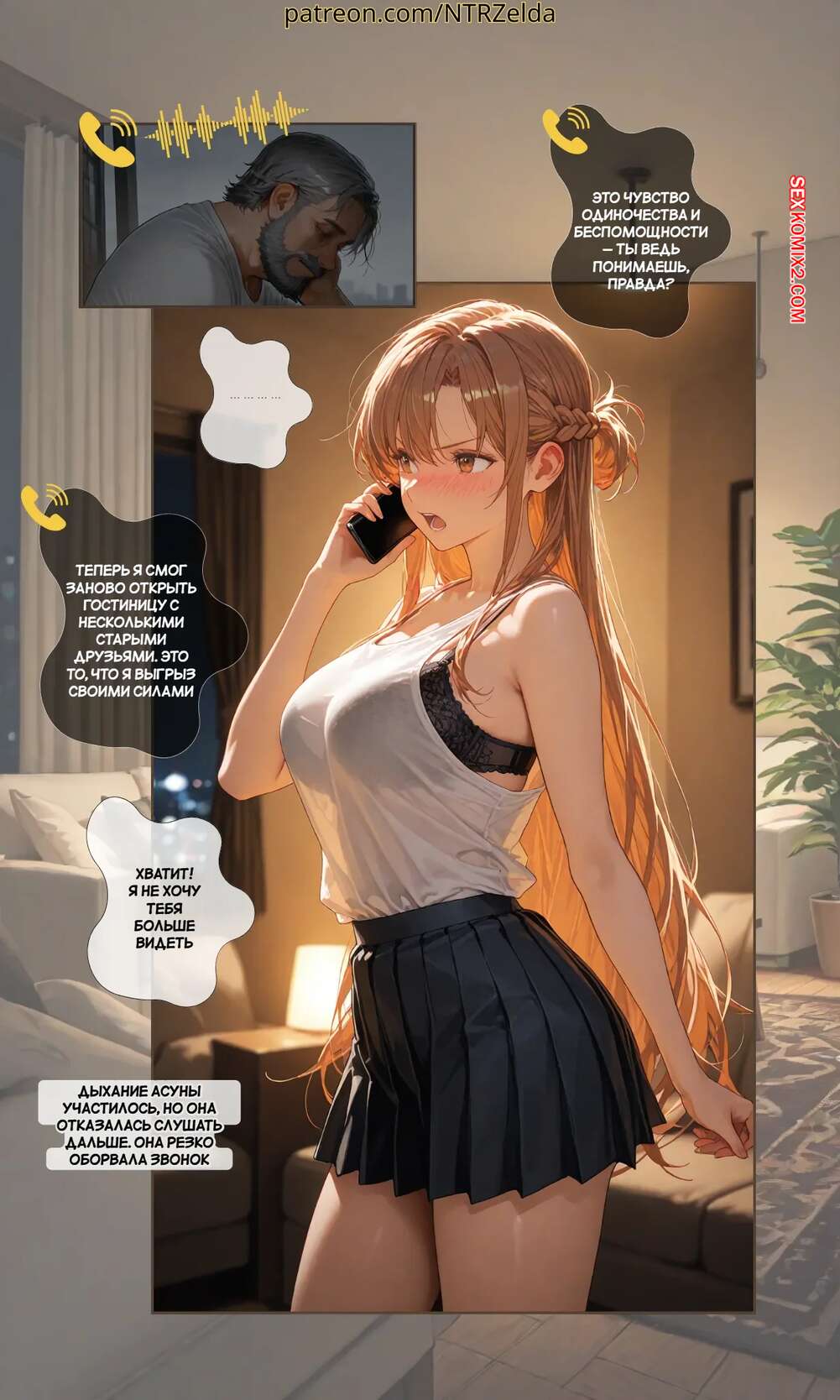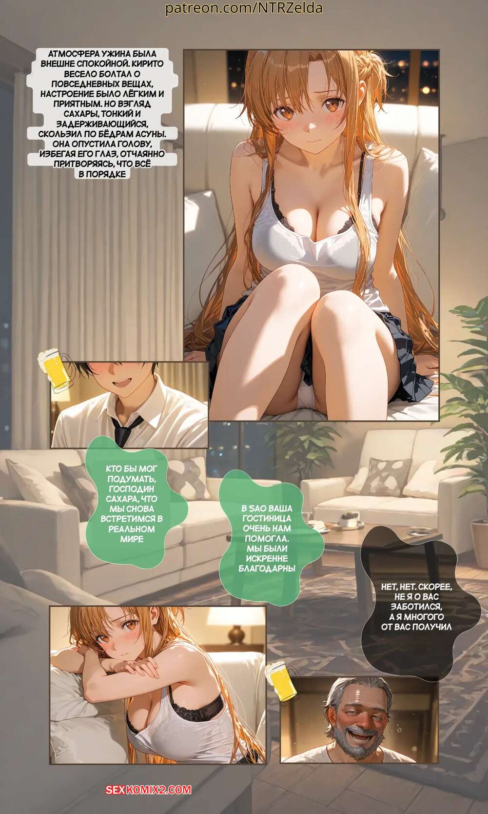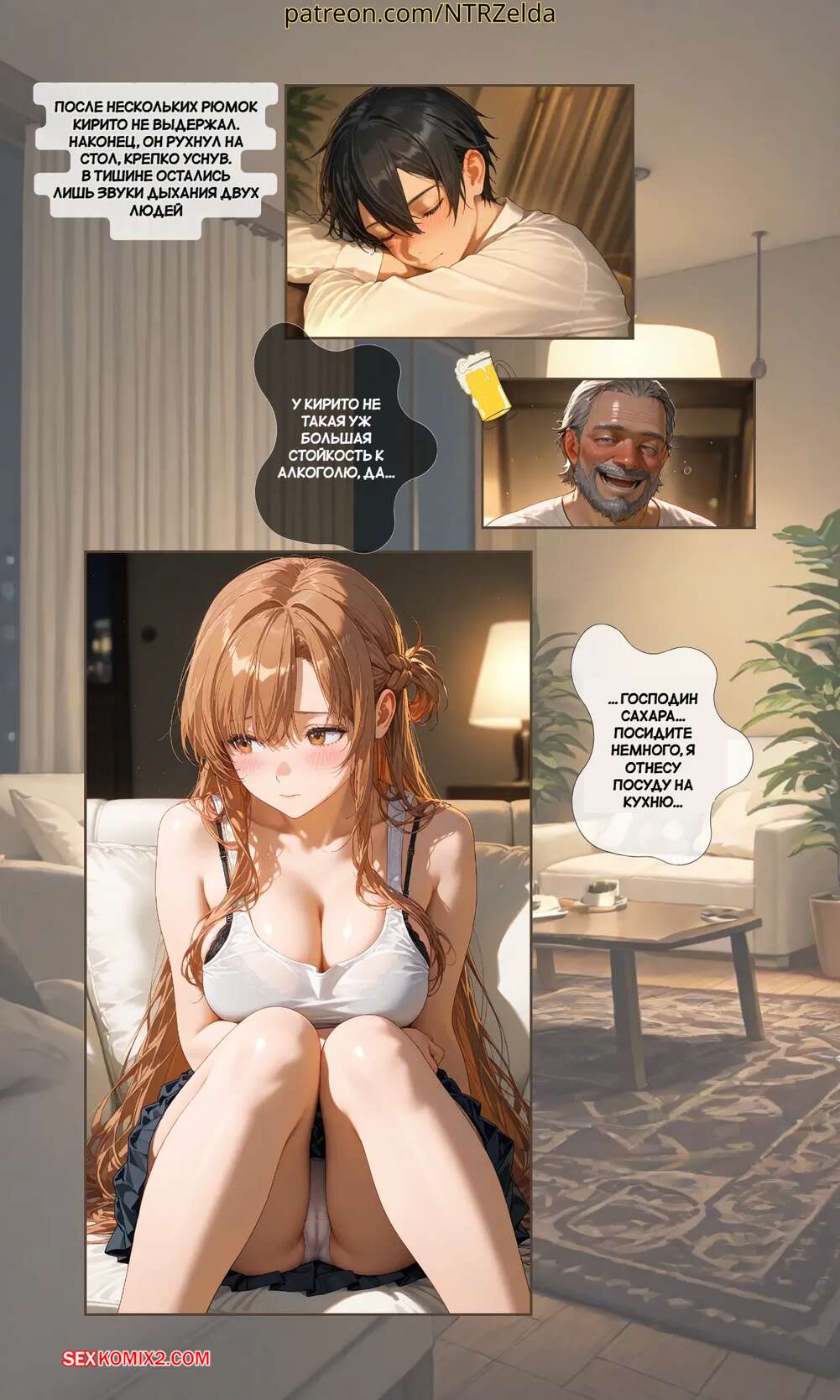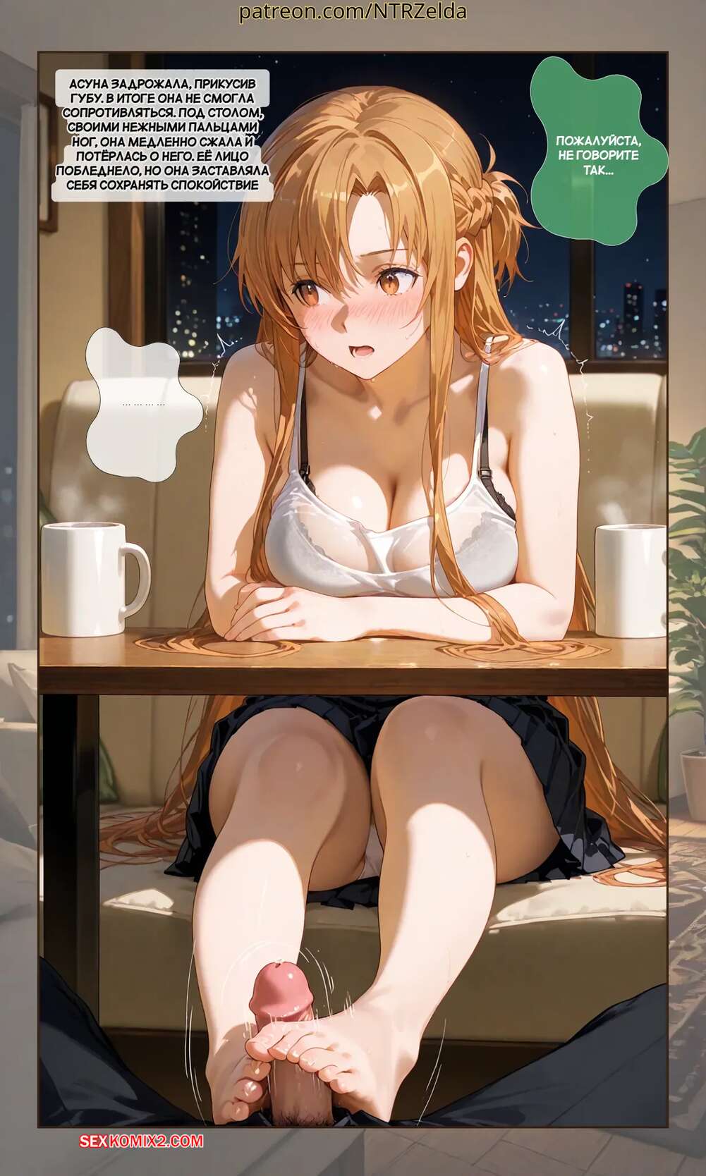 Порно комикс Закат. Гостиница Асуна. Пролог. Sunset Inn Asuna Prologue. ntrzelda. Мерзкий мужик пришел с молодым парнем к его девушке и стал к ней приставать. Девушка не может дать отпор и начинает дрочить ножками хуй мужика под столом, доставляя ему удовольствие.