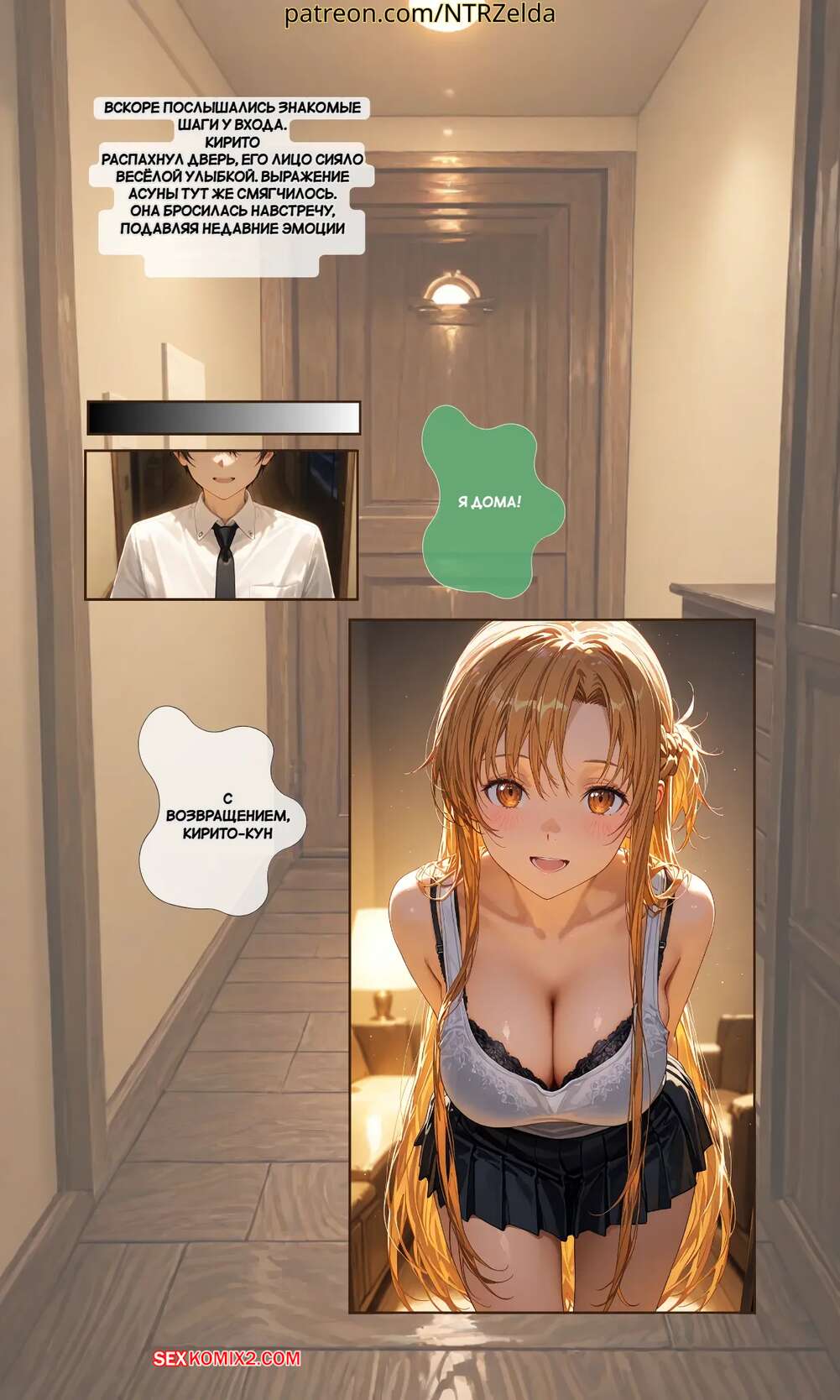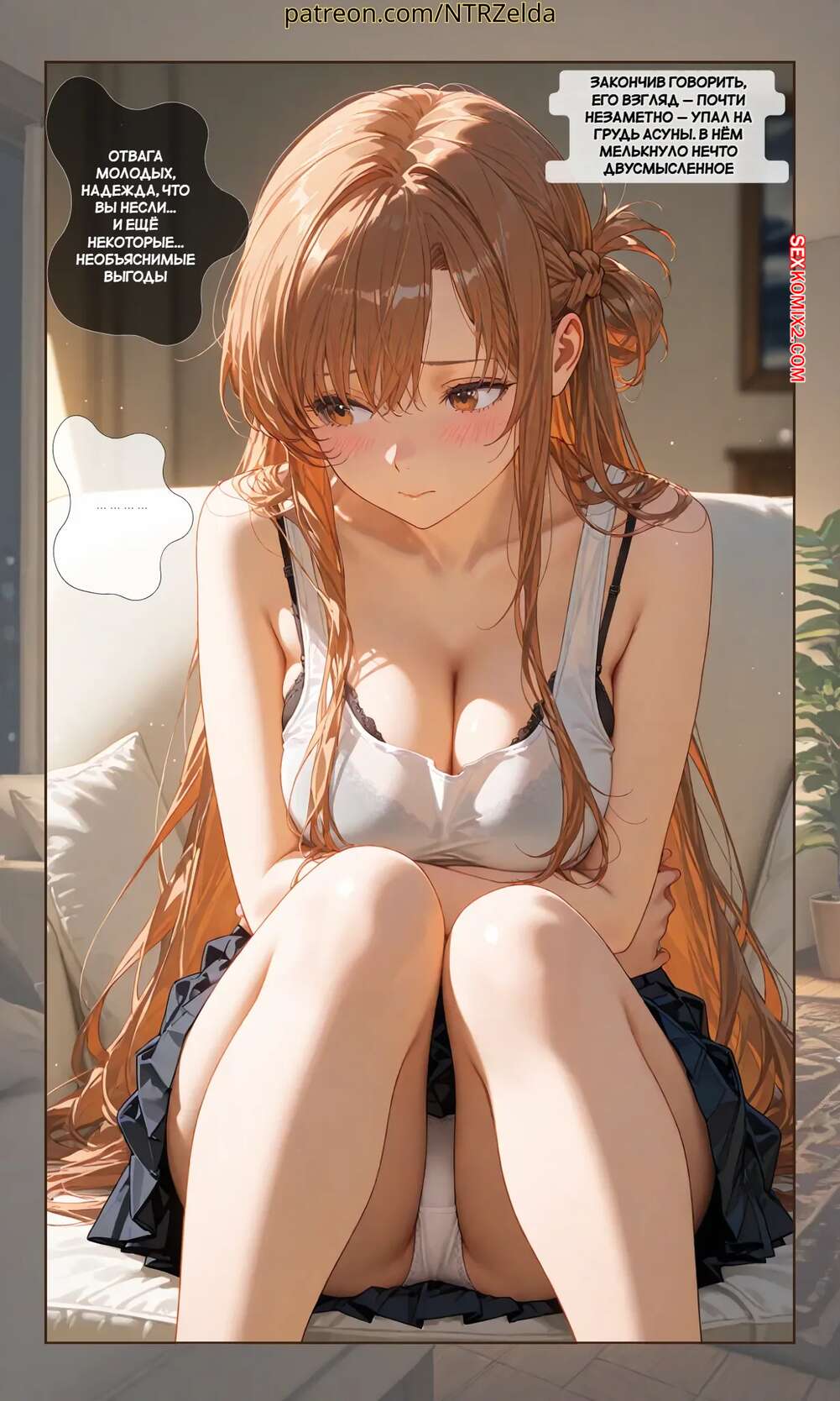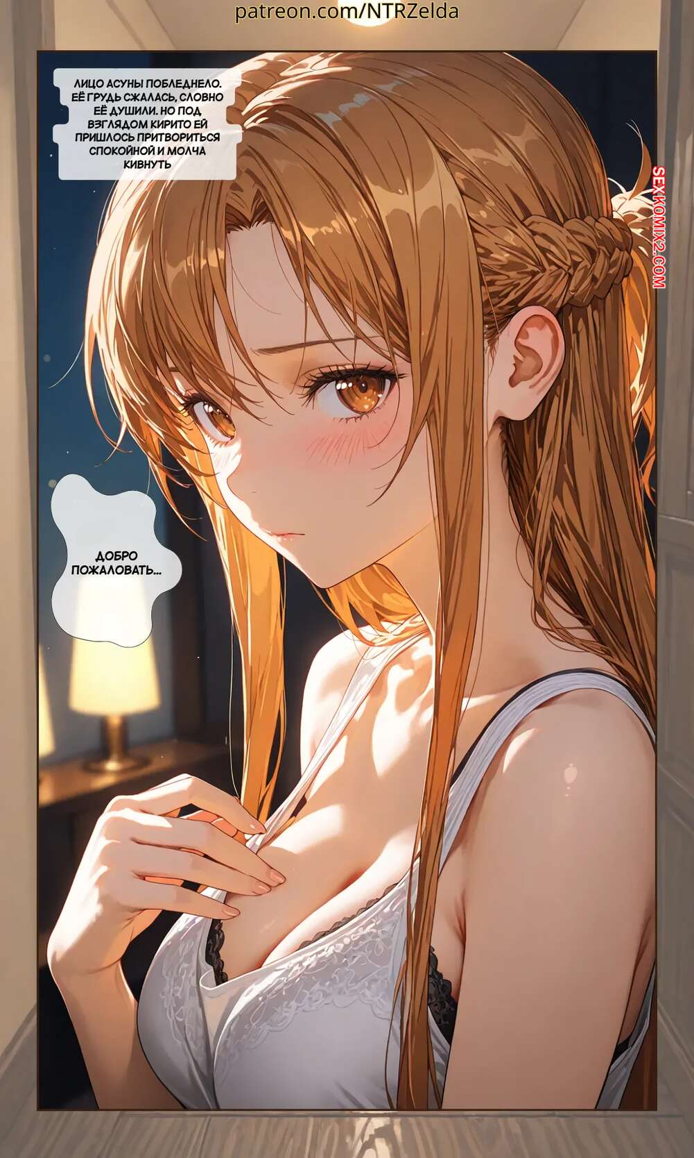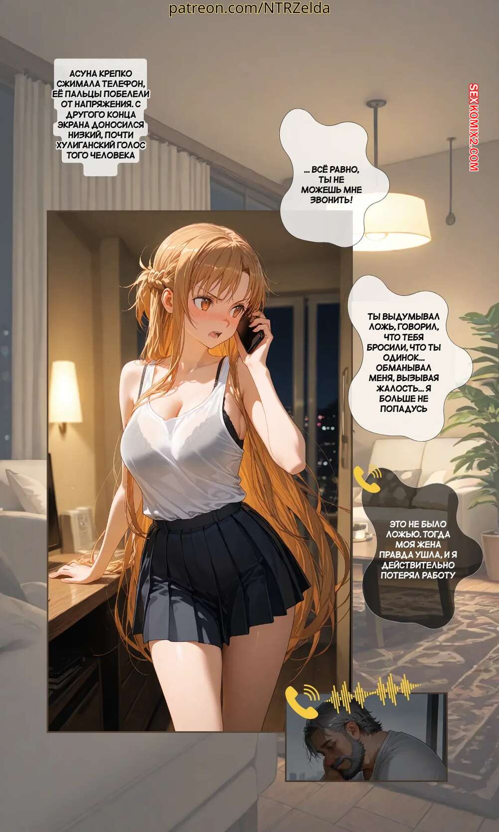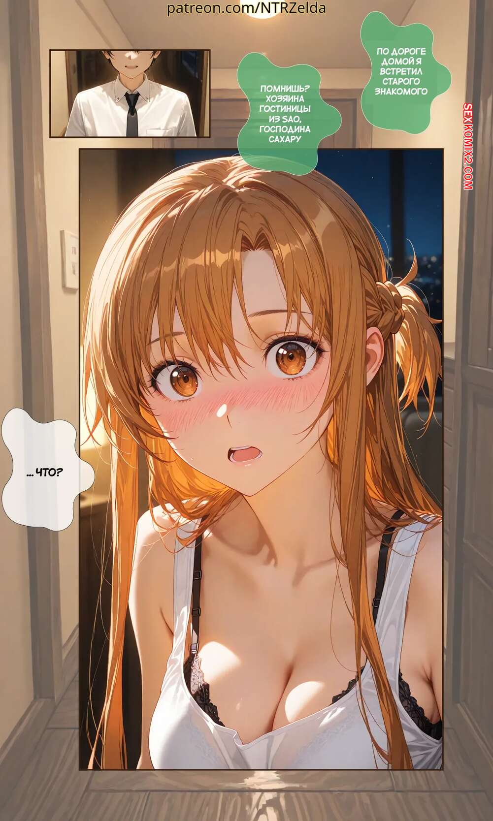 Порно комикс Закат. Гостиница Асуна. Пролог. Sunset Inn Asuna Prologue. ntrzelda. Мерзкий мужик пришел с молодым парнем к его девушке и стал к ней приставать. Девушка не может дать отпор и начинает дрочить ножками хуй мужика под столом, доставляя ему удовольствие.