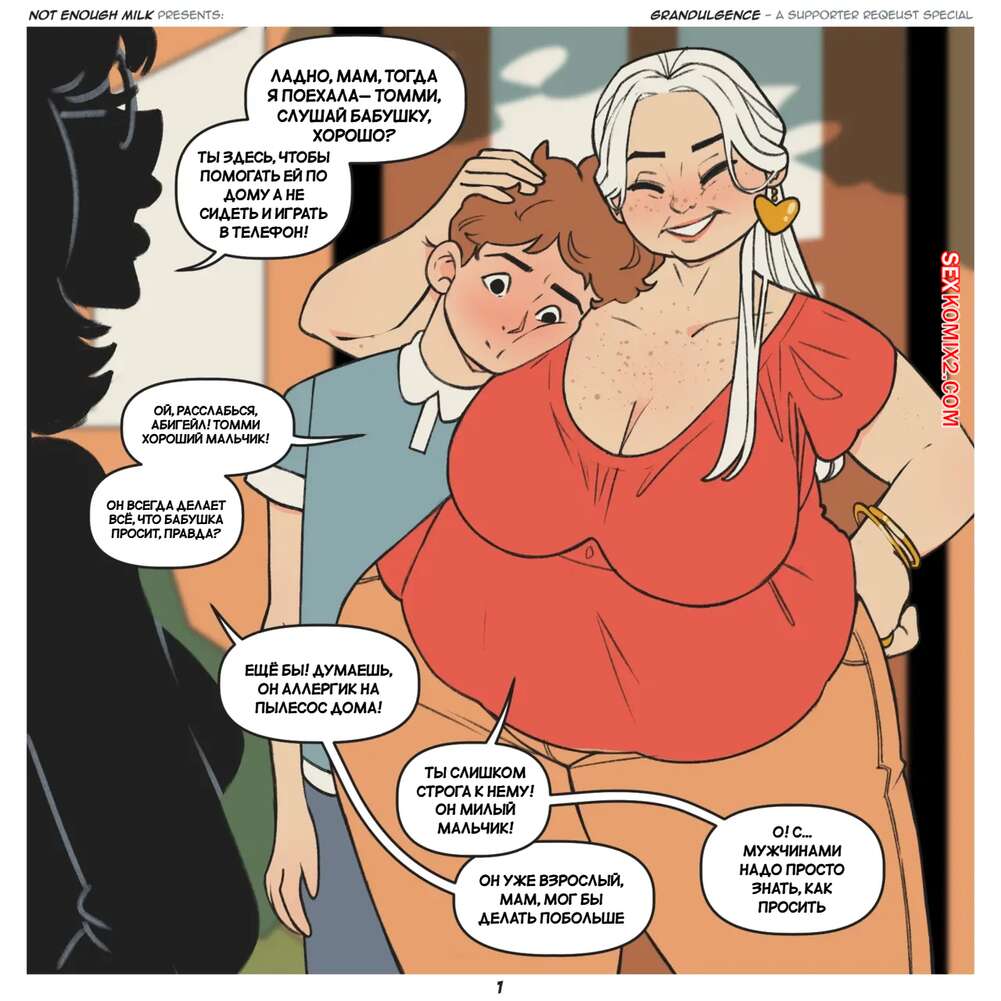 Порно комикс Великодушность. Grandulgence. Loan to Bone. NotEnoughMilk. Парнишка остался погостить у своей бабушки и красотка сразу решила воспользоваться моментом. Она усадила внука на диван и оседлала его член, чтобы он ее хорошенько выебал.