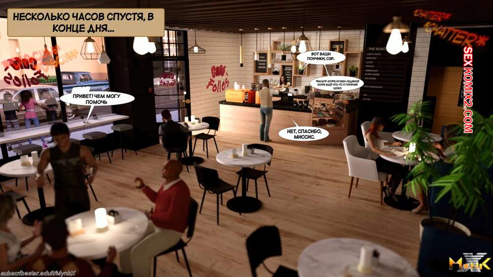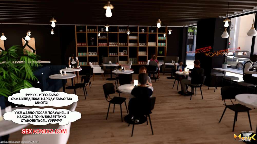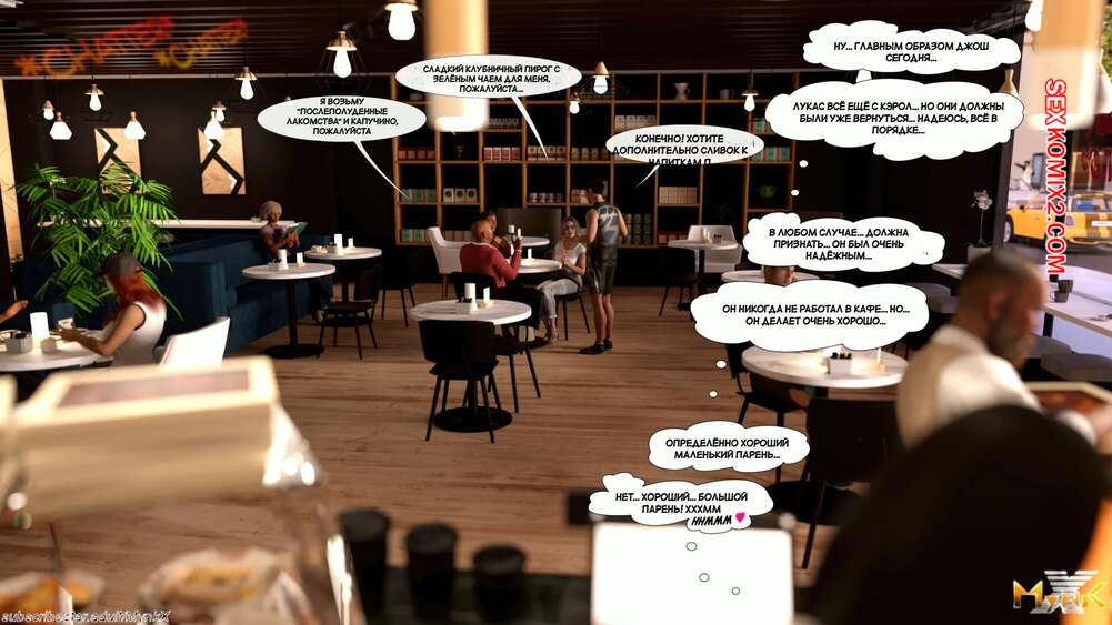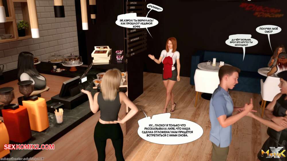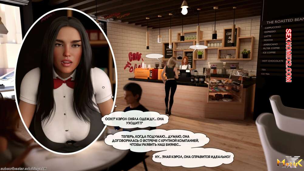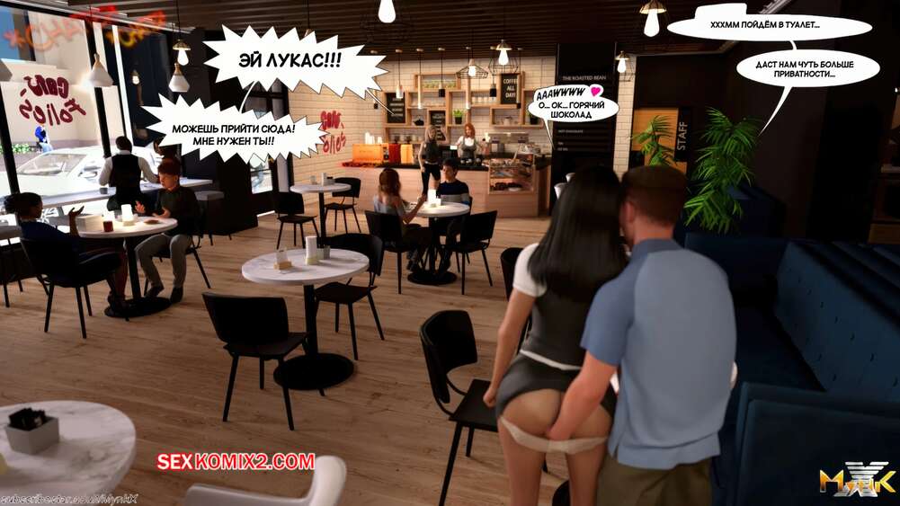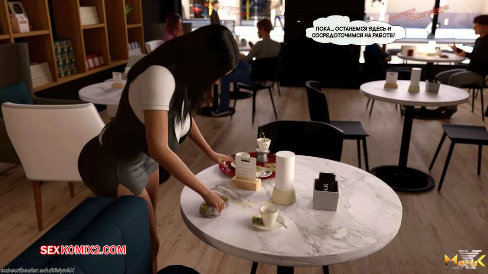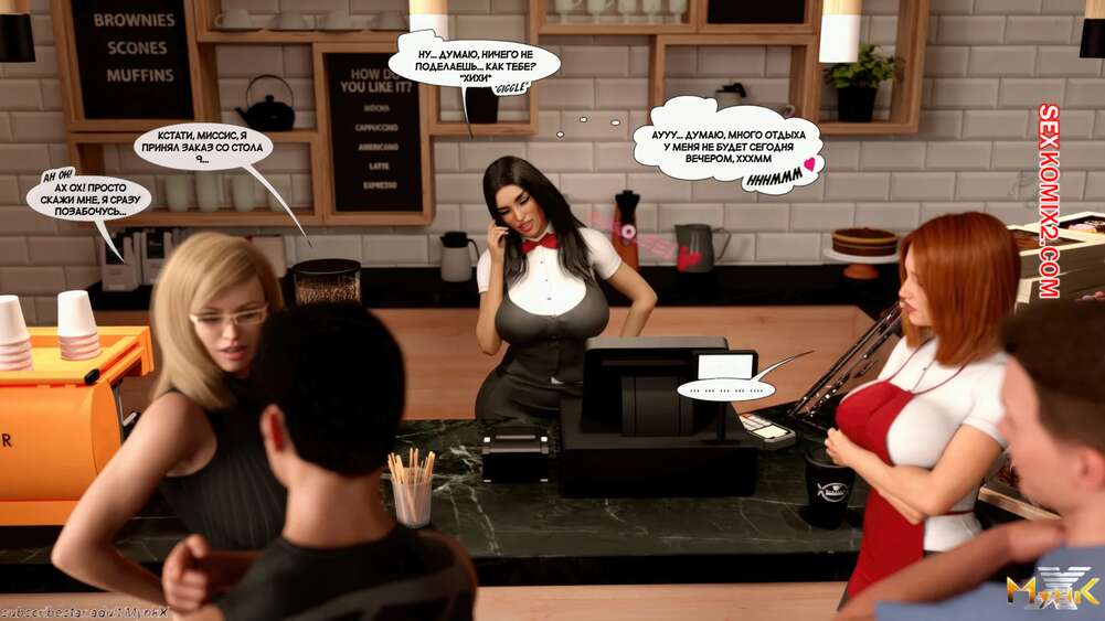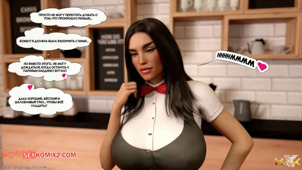 Порно комикс Кафе Фоли. Часть 5. Cafe Folies. Mynkx Парнишка отправился в кафе, где стал приставать к горячей брюнетке и позвал ее уединиться в отдельном кабинете. Он стал ласкать ее большие сиськи, после чего девчуля села на лицо парню.