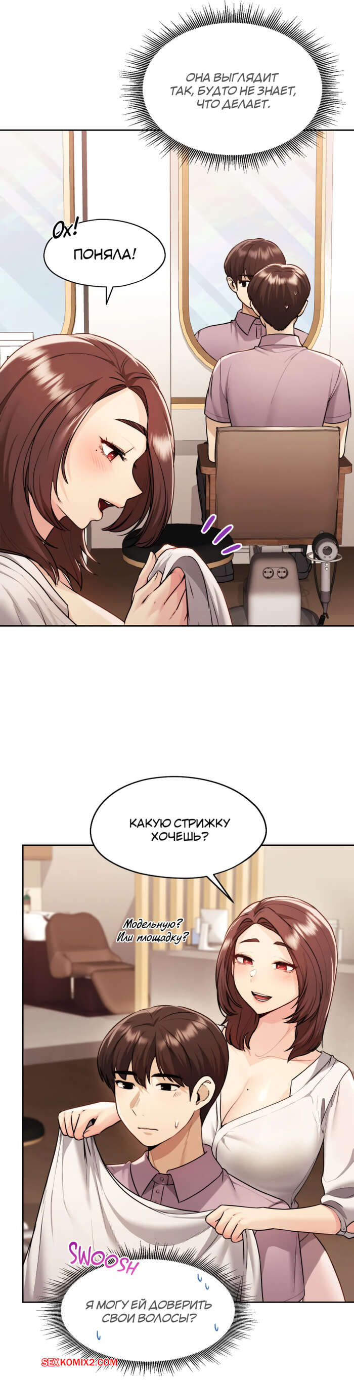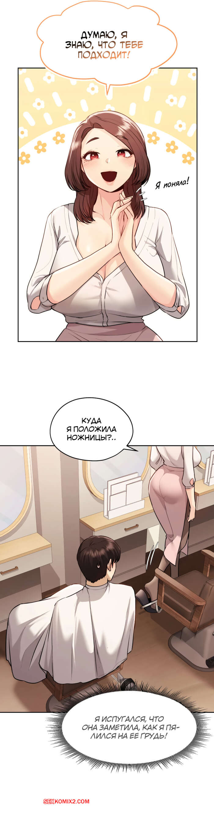 Порно комикс Идеал моей мечты. Часть 16 и 17 и 18. onelbuter coea Парнишка пришел к своей девушке и встретил ее горячую маму. Она пригласила парня к себе в салон, чтобы его постричь. Парнишка пришел с цветами и девушка взялась за работу, а он начал возбуждаться.