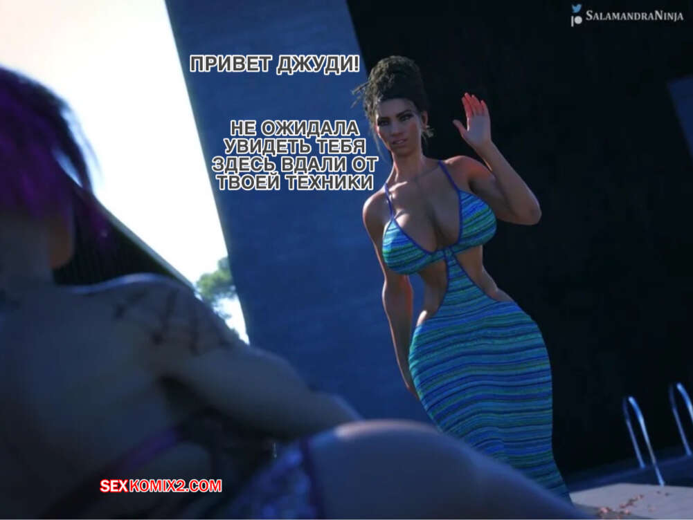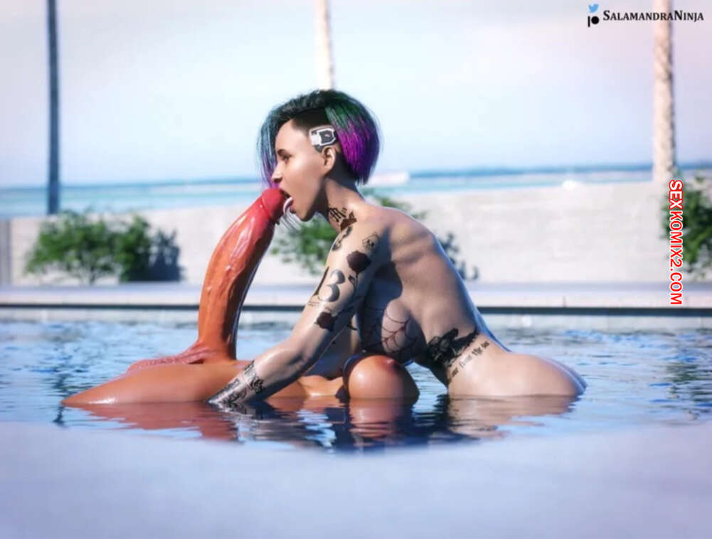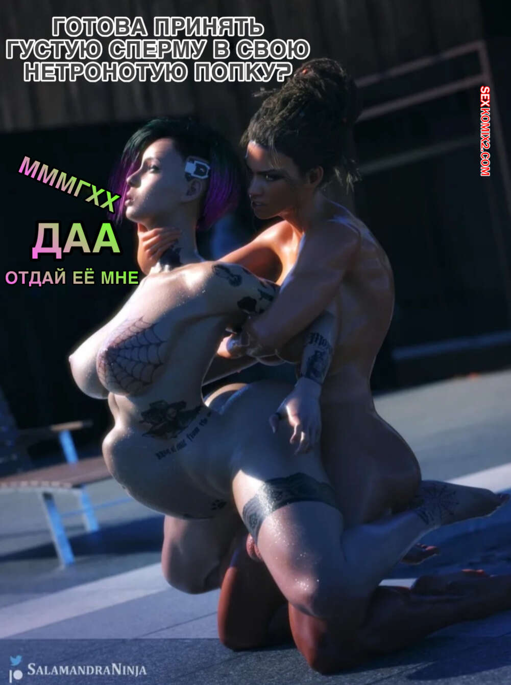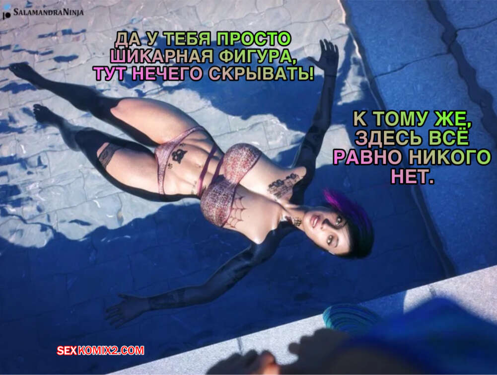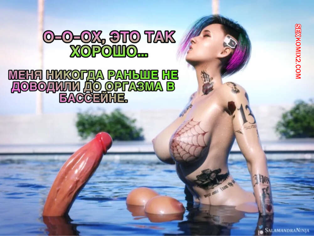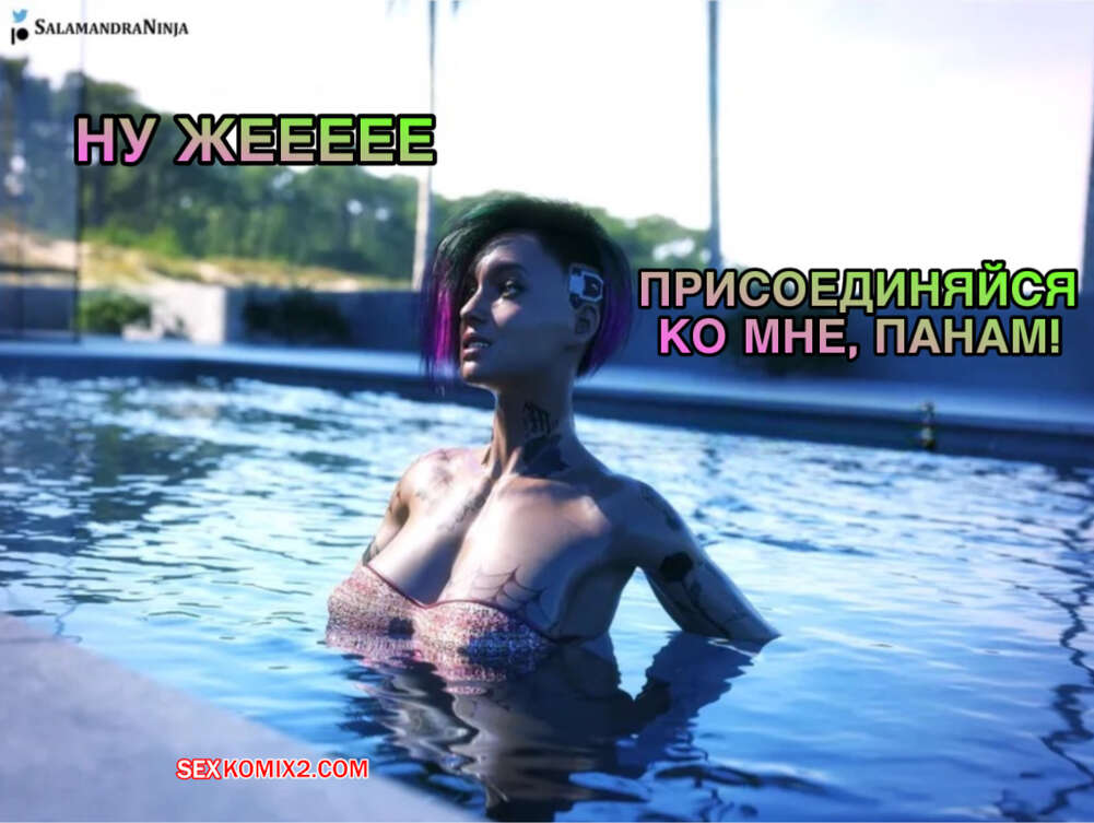 Порно комикс Cyberpunk 2077. Джуди и Панам в бассейне. Judy and Panam In The Pool. Salamandra Красотка плавала в бассейне, где ее навестила ее подруга с большим членом. Девушка стала ей отсасывать, после чего встала раком и дала выебать свою пизденку, от чего они вместе получили удовольствие.