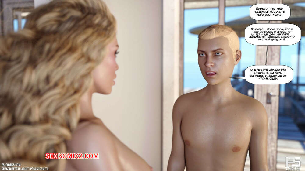 Порно комикс Нагишом. Нудистский курорт. Часть 27. Au Naturel. Pegasus Smith Дилан проснулся в объятиях своей мамы и тети. Он все еще не может поверить, что теперь это его жизнь. Он будит мамочку и напоминает ей, что им нужно встретиться с Питом.