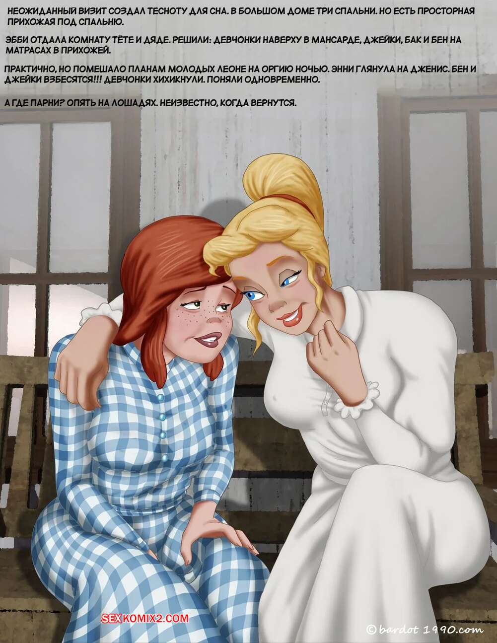 Порно комикс Однажды на юге. Часть 13. Once Upon a Time in the South. Bardot1990 Подруги красотки остались наедине и решили повеселиться. Рыжуля разделась и раздвинула ножки перед подружкой, после чего блондиночка стала лизать ее пизденку.