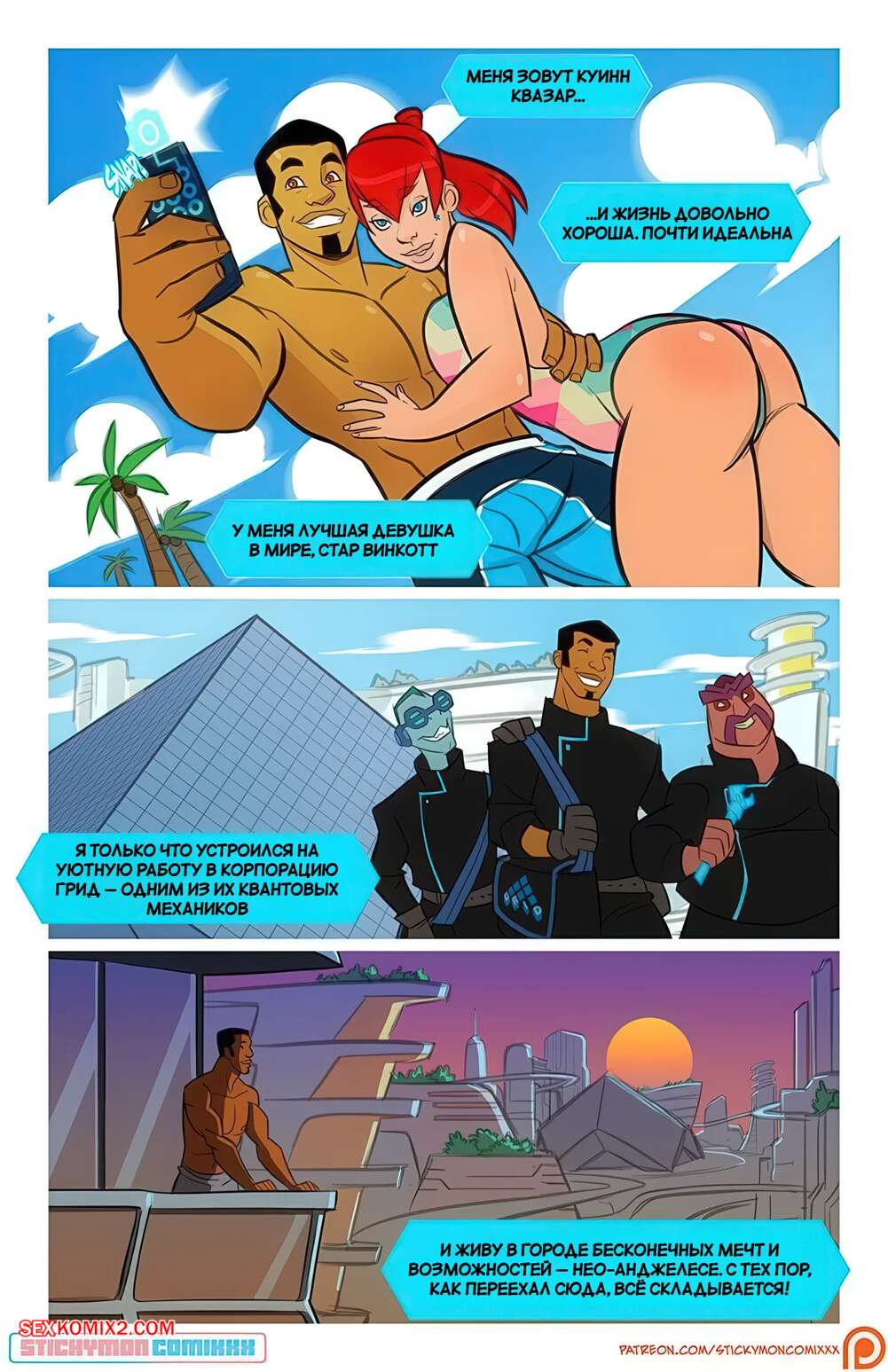 Порно комикс Квантовый механик. Часть 1. The Quantum Mechanic. Quantum Leap. StickyMon. Инопланетная красотка решила пошалить со своим боссом и стала его соблазнять, подрачивая член парня. Девушка раздвинула ножки и залезла на стол, чтобы он ее хорошенько выебал.