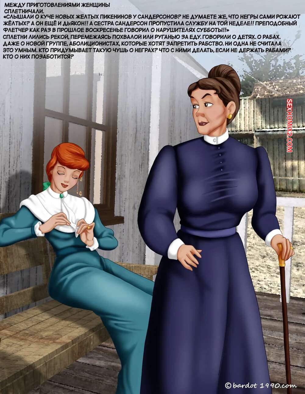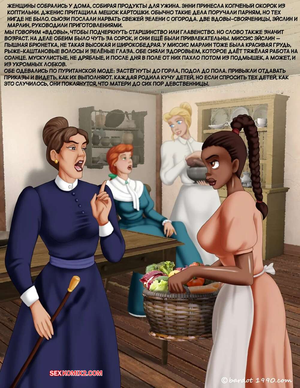 Порно комикс Однажды на юге. Часть 15. Once Upon a Time in the South. Bardot1990 Подруги готовились к застолью и откровенно разговорились. Они обсуждали разные темы, но вскоре перешли к сексуальным темам и одна из красоток призналась, что любит трахаться с темнокожим любовником.