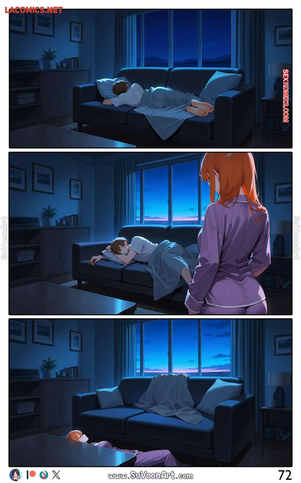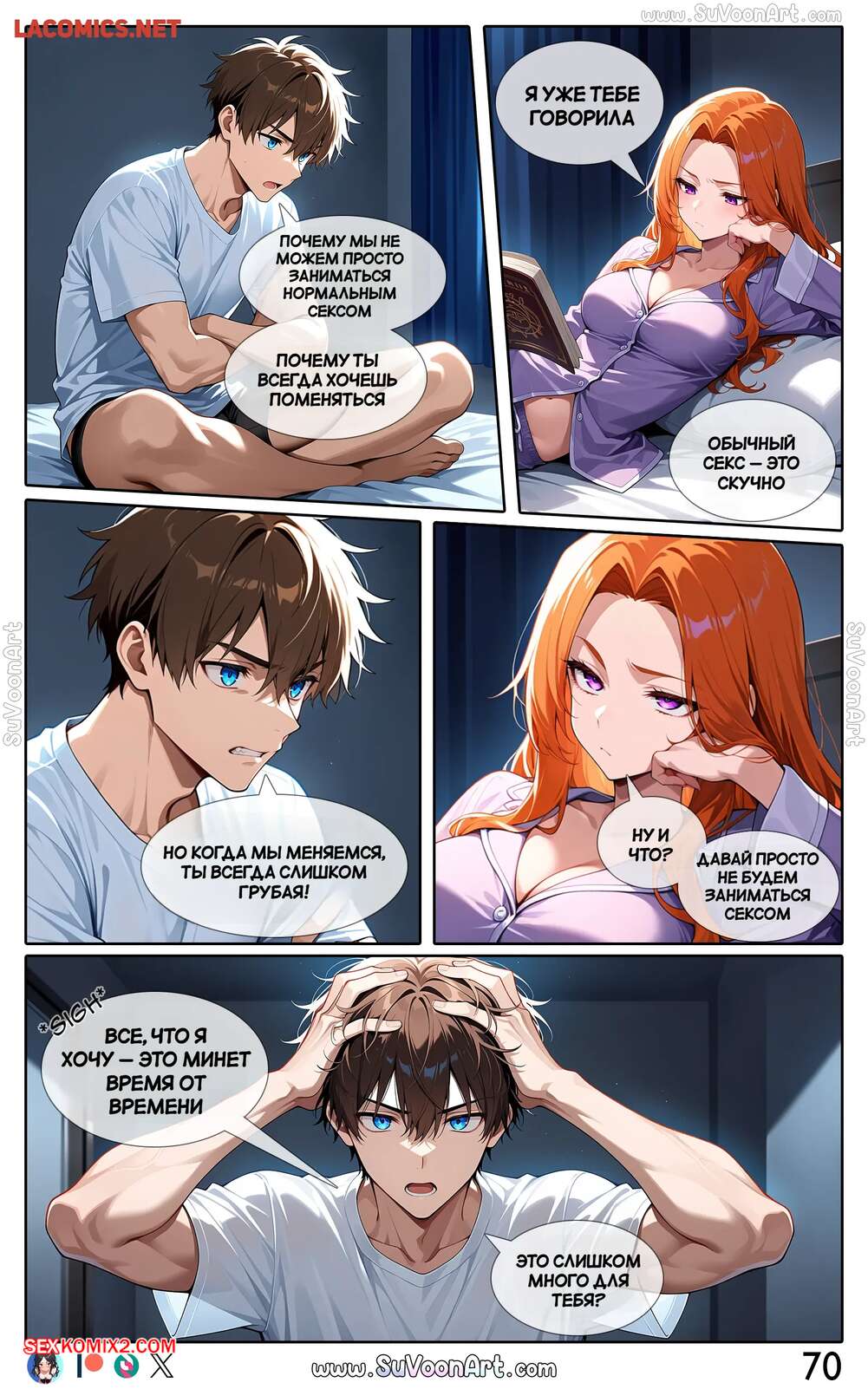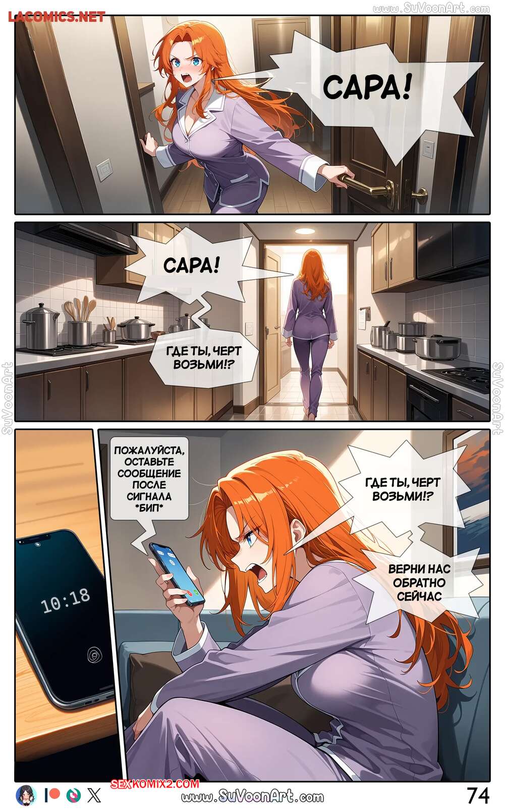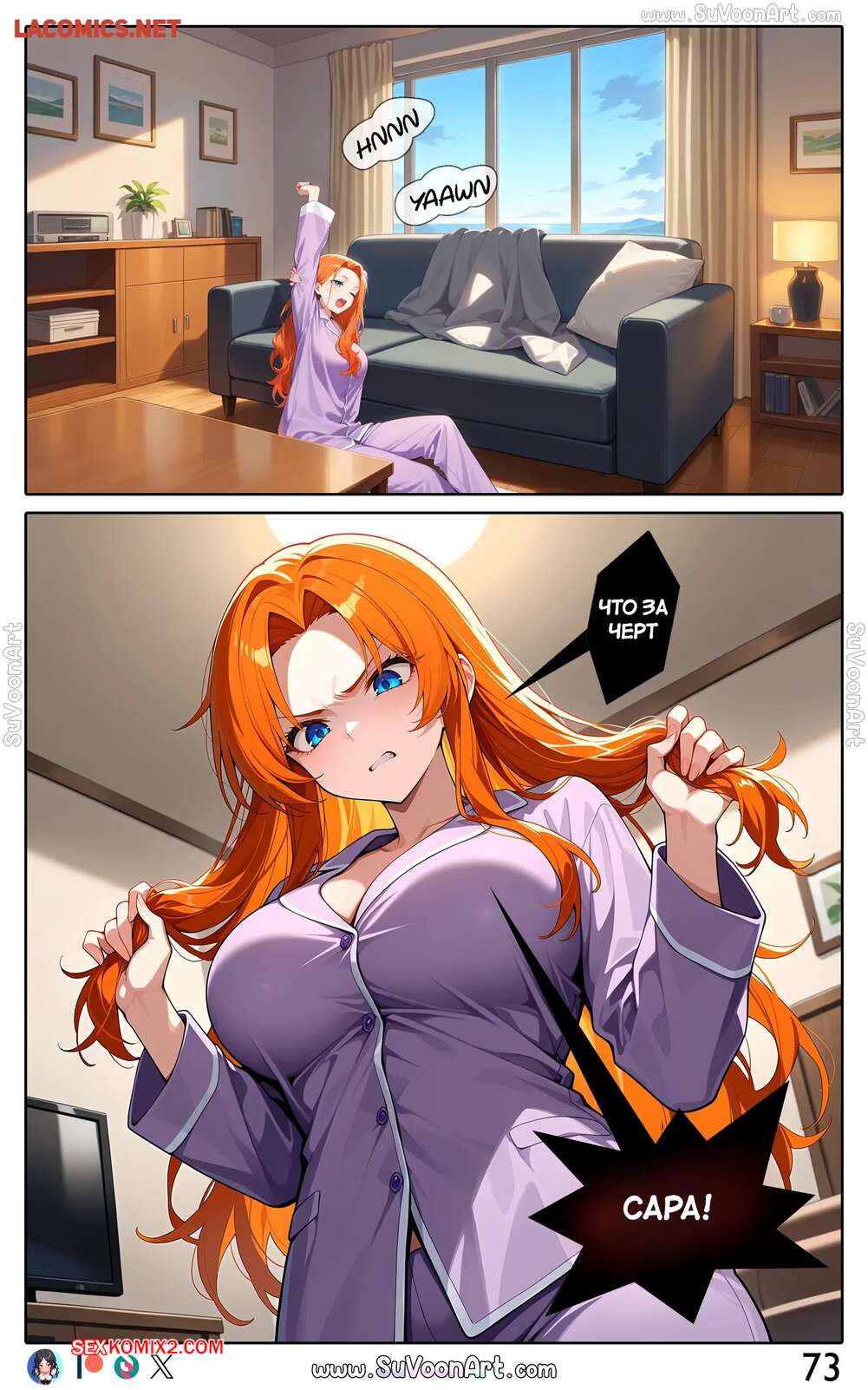 Порно комикс Другая сторона. Часть 4. The Other Side. SuVoonAr Парень с девушкой сидели в гостинной и блондиночка стала к нему приставать, желая пошалить. Она разделась и возбудила парня шикарным телом, после чего раздвинула ножки и дала ему себя выебать.