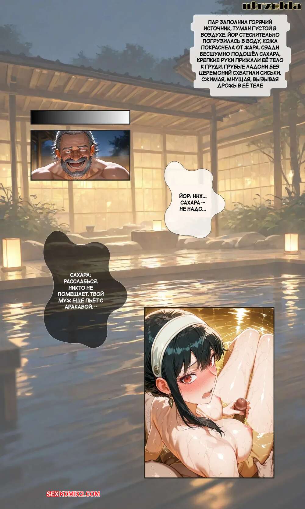 Порно комикс Закат. Инн Йор. Часть 2. Sunset Inn Yor. ntrzelda Горячая брюнетка отдыхала в горячей воде, где компанию ей составил старик. Он стал ласкать большие сиськи девушки, после чего поставил ее на колени и дал у себя отсосать.