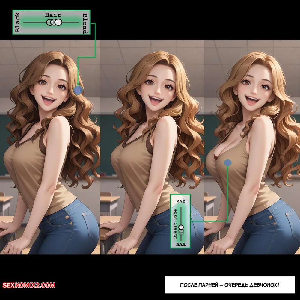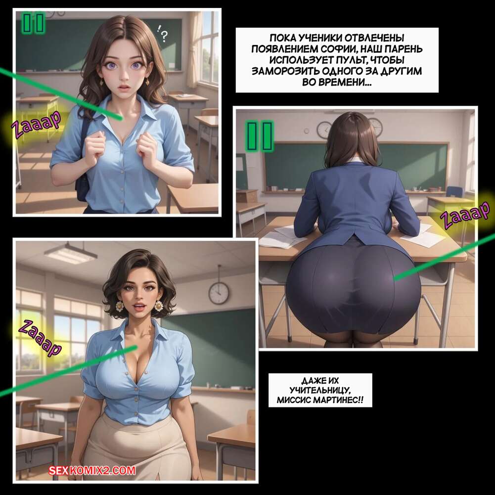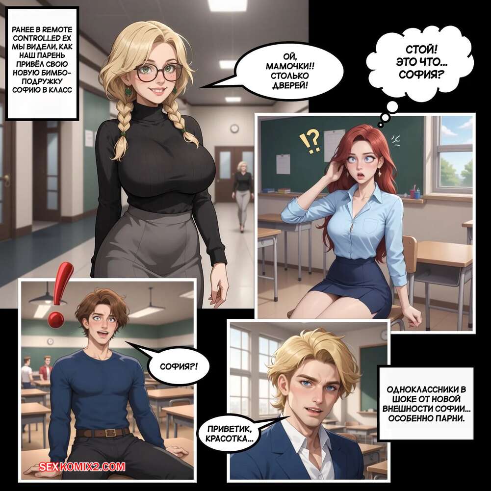 Порно комикс Дистанционно управляемая. Занятие второе. Remote Controlled EX 02 Парень пришел в школу, чтобы вновь воспользоваться своим пультом управления. Он контролирует тела девушек и вызывает у них сильное возбуждение, после чего увеличивает их формы.