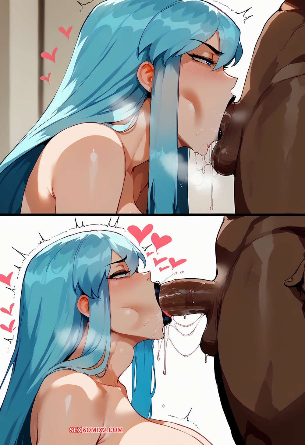 Порно комикс Nemissa x BBC 2. Megami Tensei. Floxin Голубоволосая красотка возбуждена и хочет секса. Она встала на колени перед темнокожим парнем и отсосала его член, после чего раздвинула ножки и дала себя выебать.