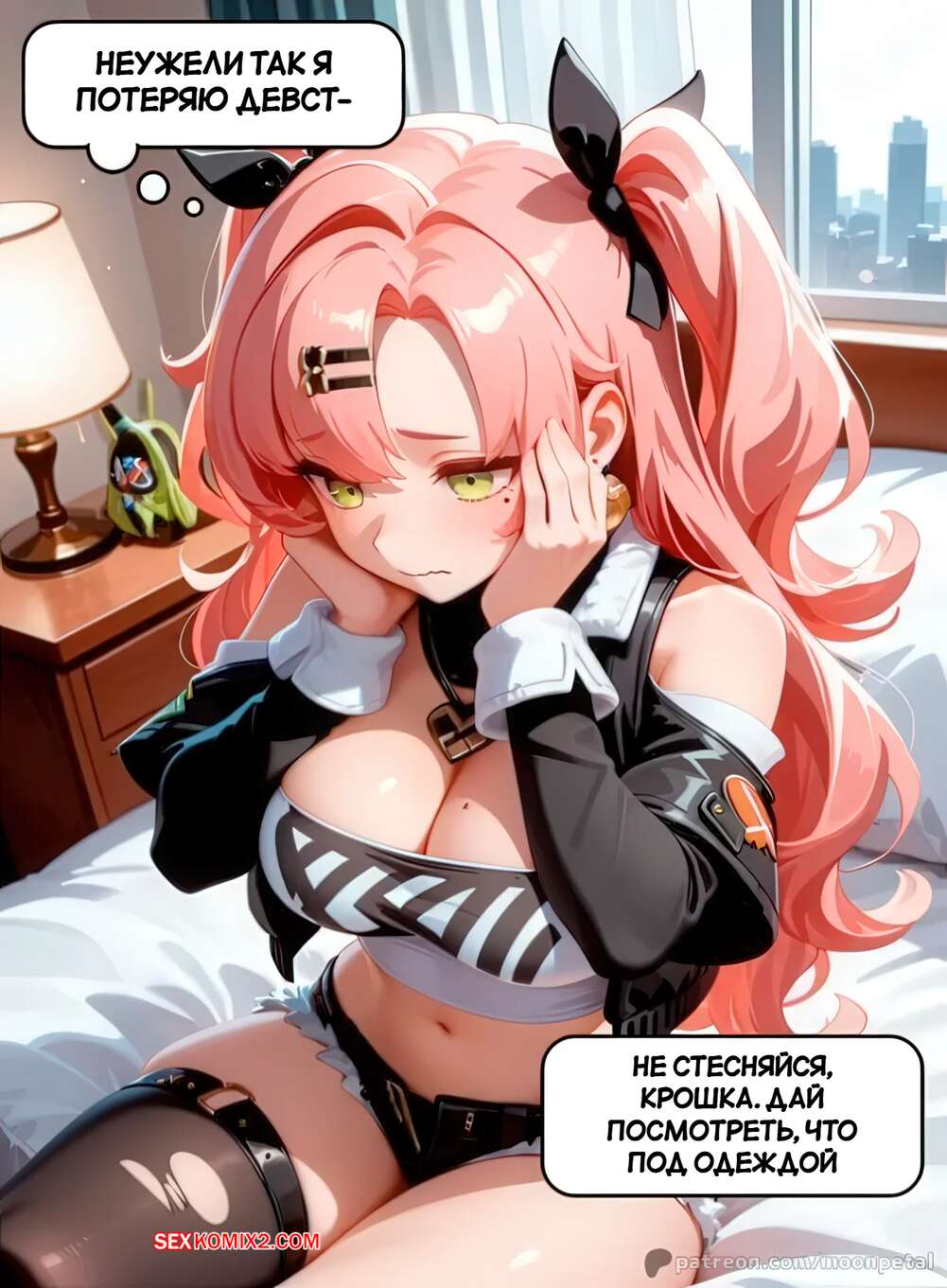 Порно комикс Хочешь поспорить. Часть 5. Wanna Make a Bet. Moon Petal Горячая красотка пригласила парня к себе домой, чтобы повеселиться. Она встретила его в сексуальном белье и стала сосать хуй парня, после чего дала ему выебать свою пизденку.