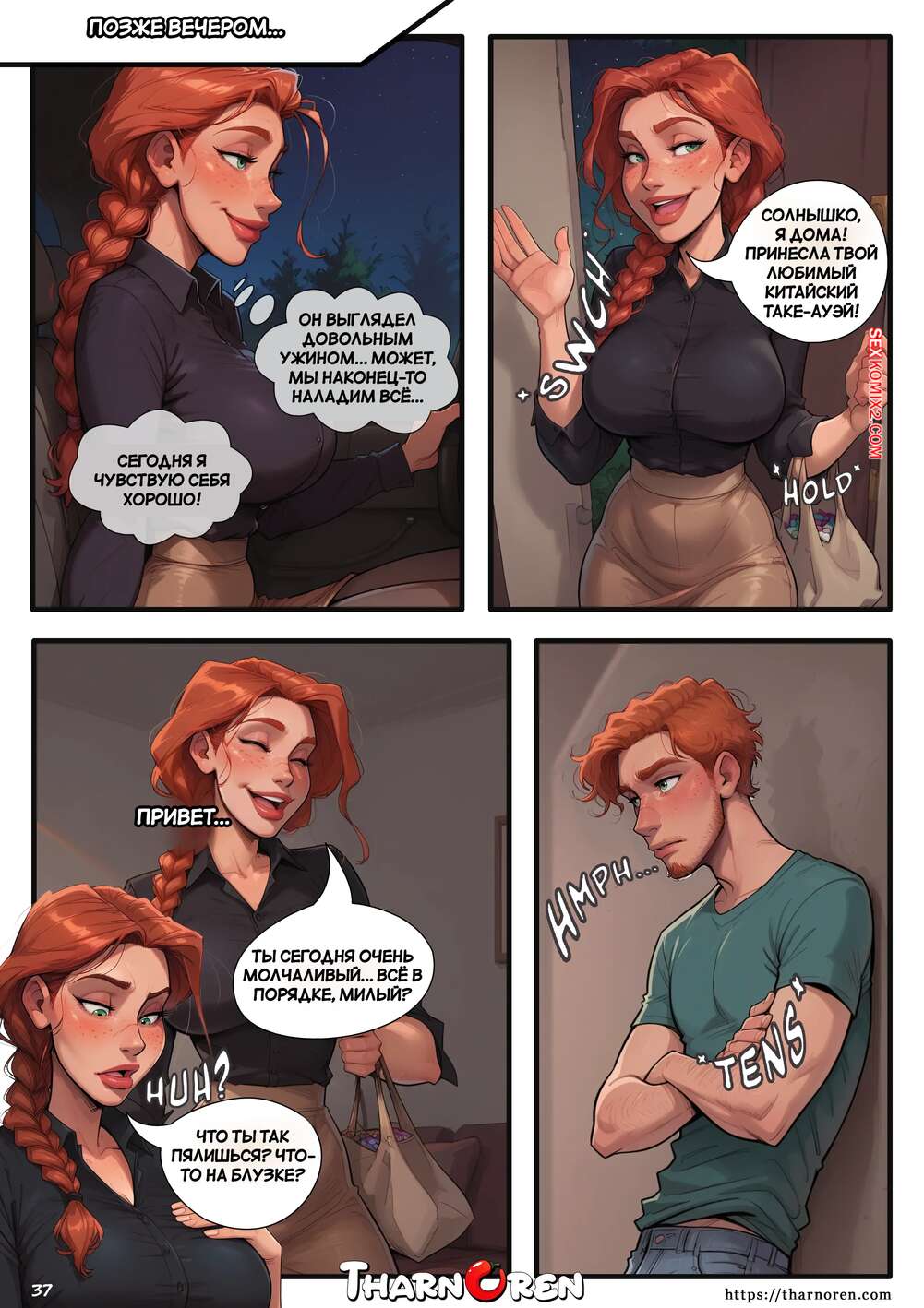 Порно комикс Секретная терапия мамы. Moms Secret Therapy. Tharnoren. Горячая милфа любит секс с парнями помоложе. Она нашла отличный вариант и дала своему новому дружку выебать пизденку, после чего проглотила всю его сперму из презика.
