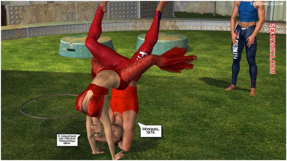 Порно комикс Цирк. Часть 1. The Circus. VGer Горячая милфа пришла помочь своим племянникам с цирковым номером. Парни не смогли устоять перед аппетитным телом тети и соблазнили ее, чтобы трахнуть красотку во все дырочки.