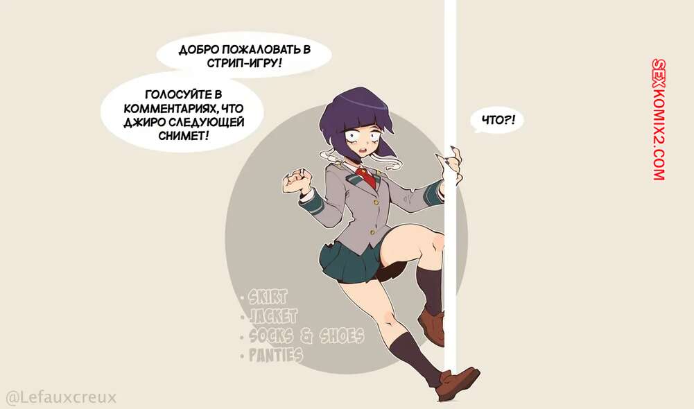 Порно комикс Игра в раздевание Киока Джиро. Kyoka Jiro Strip Game. creux. Горячая брюнетка решила принять участие в игре на раздевание. Сперва она примеряет разные наряды, а затем постепенно снимает свое нижнее белье, демонстрируя аппетитные формы.
