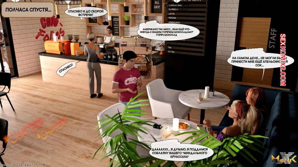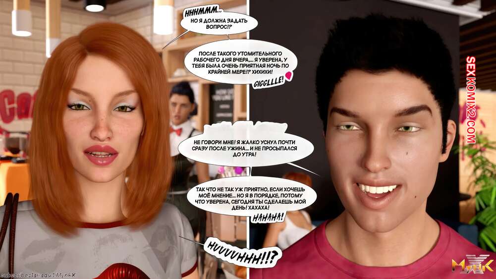 Порно комикс Кафе Фоли. Часть 10. Cafe Folies. Mynkx Парнишке уединился в офисе с горячей брюнеткой и стал ласкать пальчиками ее пизденку, возбуждая красотку. Она готова к сексу и встала раком, чтобы получить в себя хуец паренька.