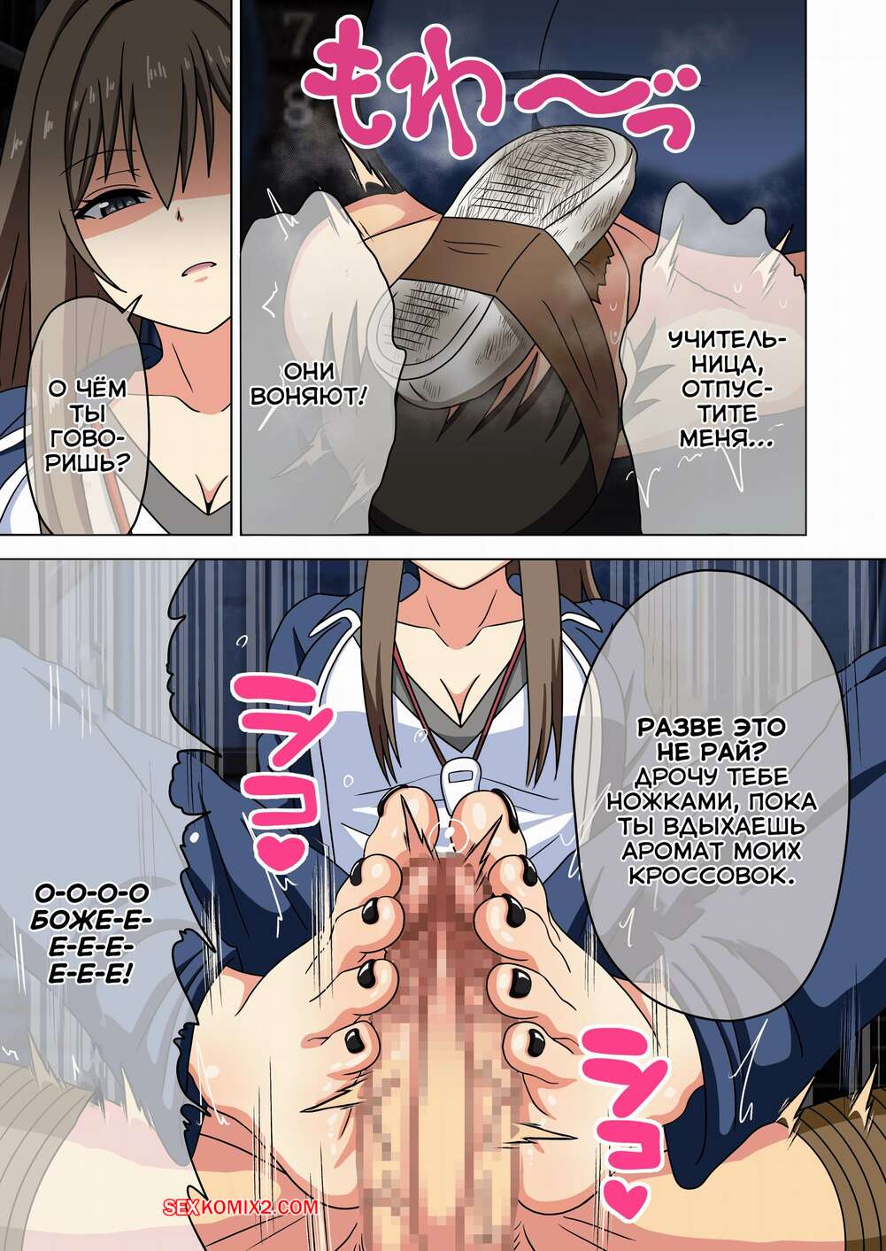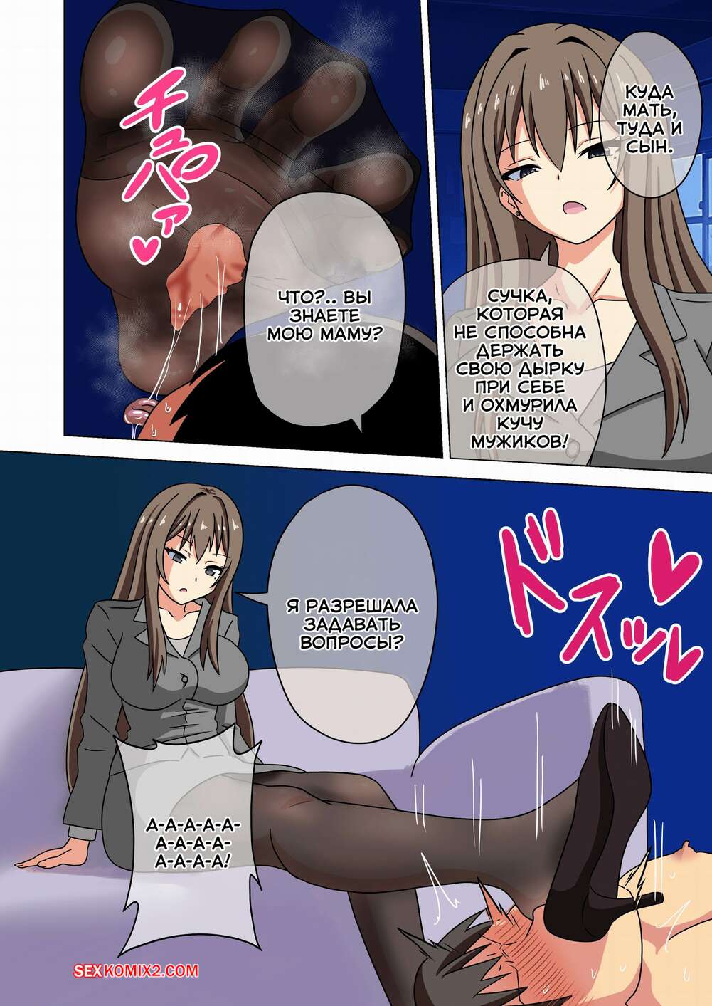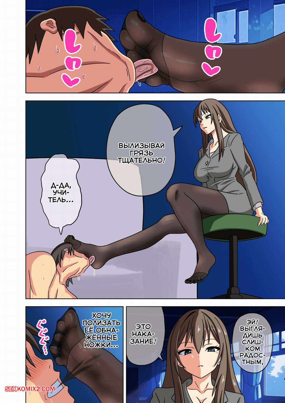 Порно комикс История футфетишиста. Часть 41. Nush Горячая брюнетка застала парня голым и решила пошалить. Она сняла обувь и стала дрочить хуец парня своими ножками в чулках, от чего он получил кайф и обильно кончил.