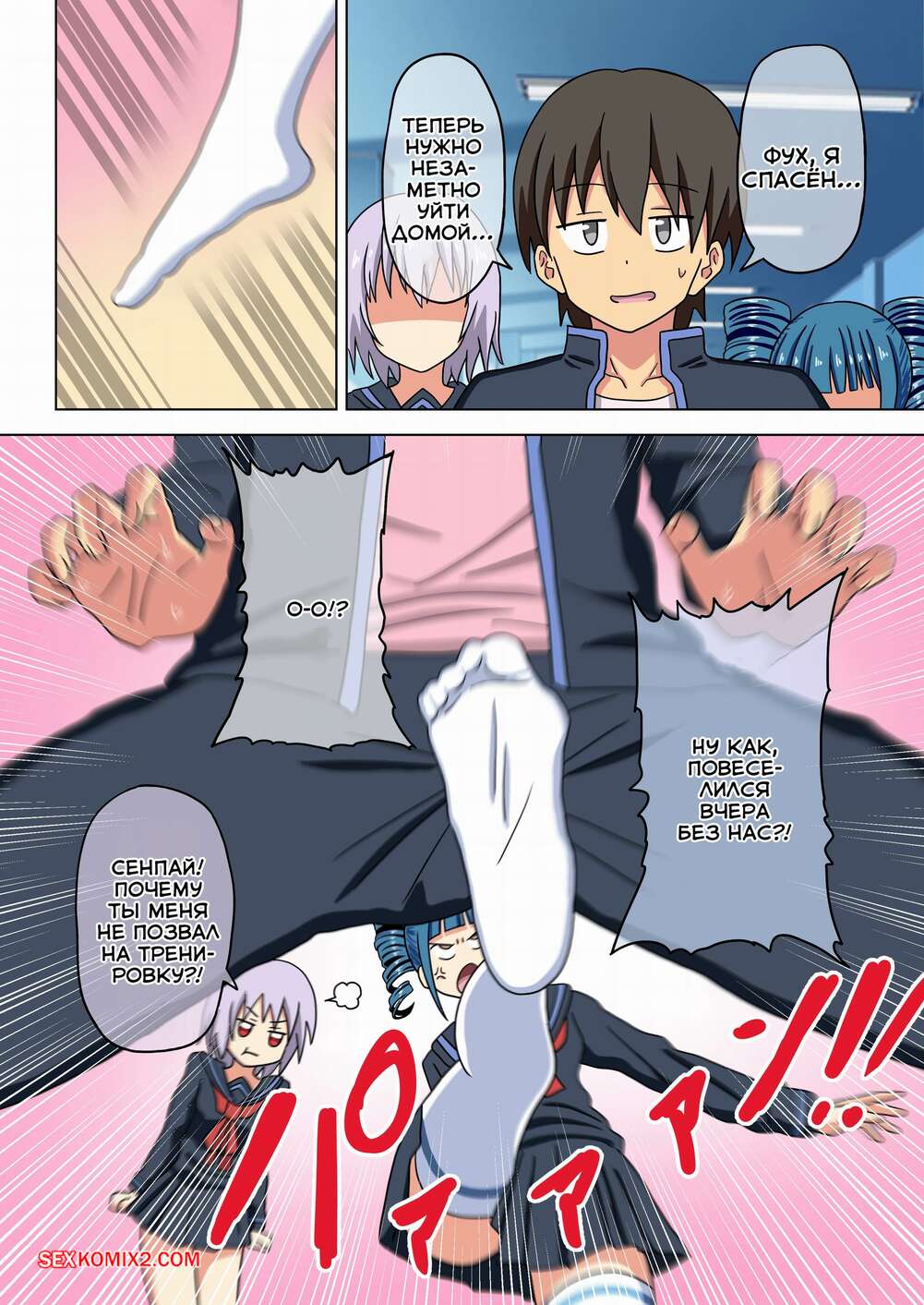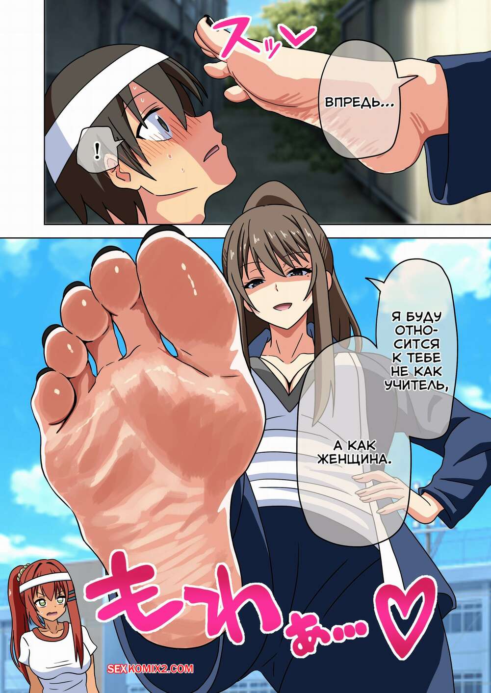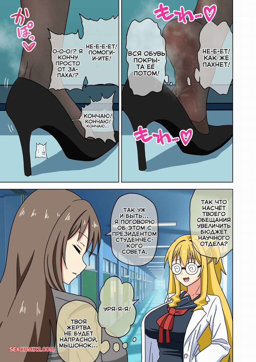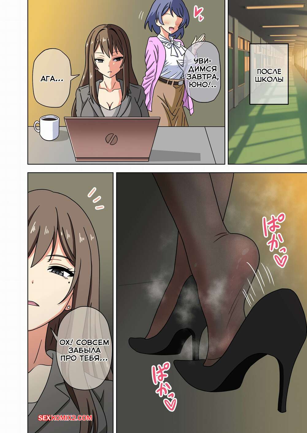 Порно комикс История футфетишиста. Часть 41. Nush Горячая брюнетка застала парня голым и решила пошалить. Она сняла обувь и стала дрочить хуец парня своими ножками в чулках, от чего он получил кайф и обильно кончил.