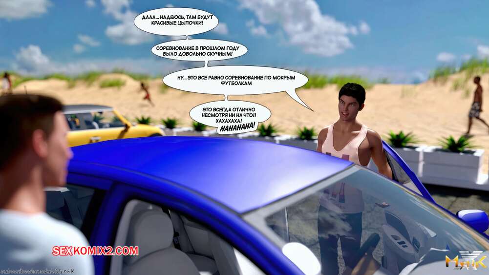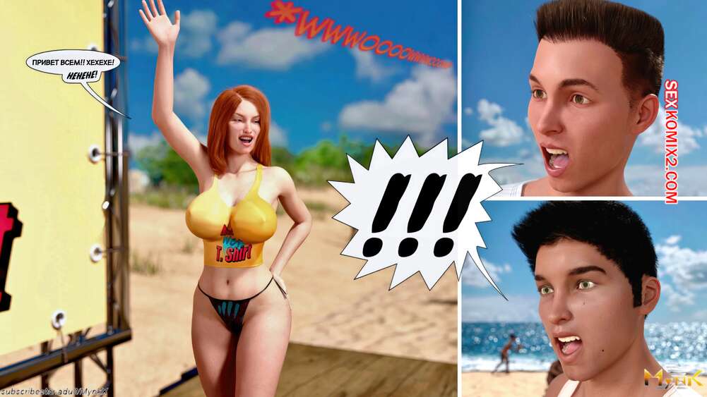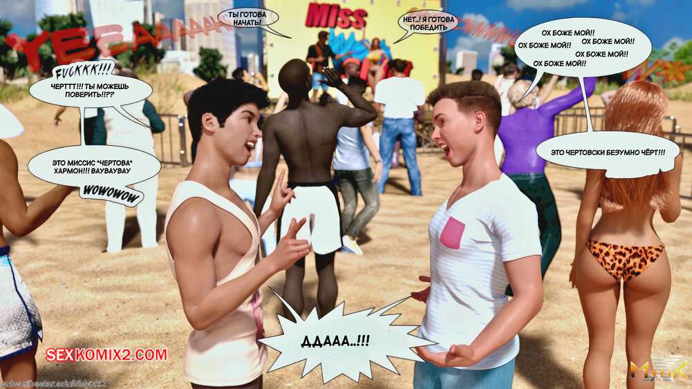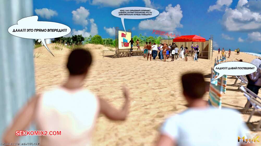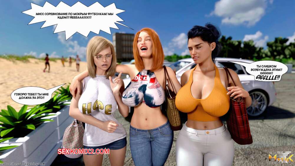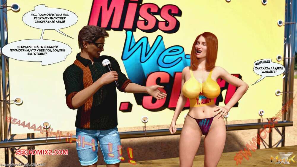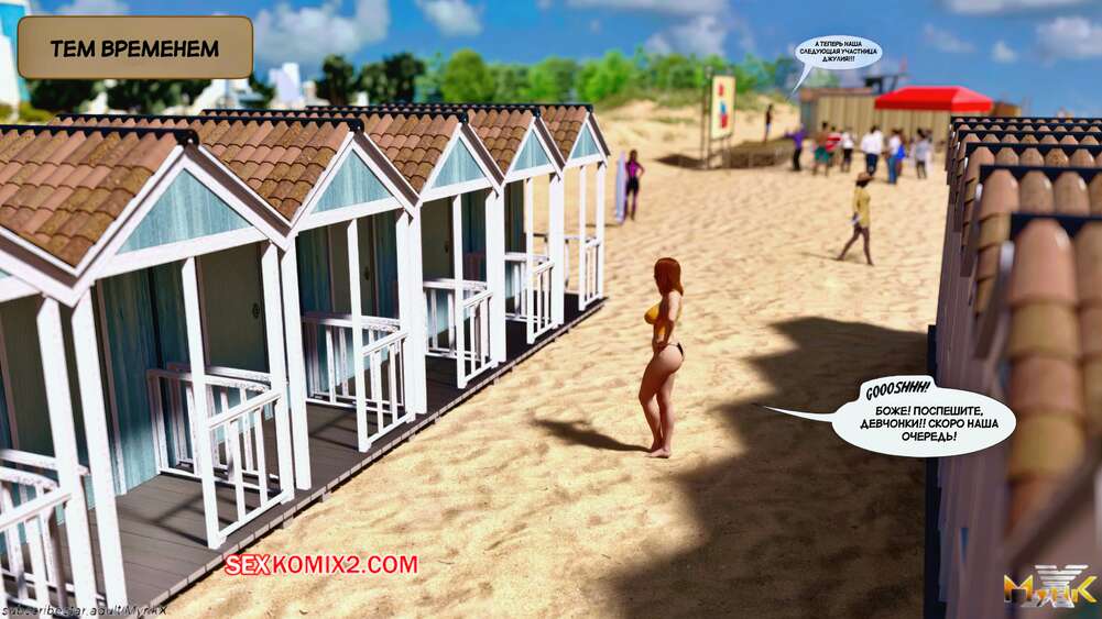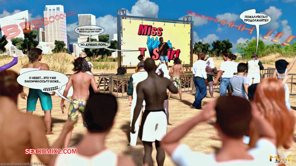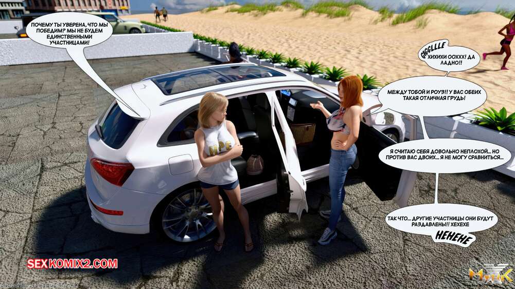 Порно комикс Конкурс. The Contest. Mynkx. Три горячие подруги милфы отправились на пляж, чтобы расслабиться. Сперва блондиночка уединилась со стариком и дала трахнуть свою пизденку, после чего девушки приняли участие в конкурсе мокрых маек.