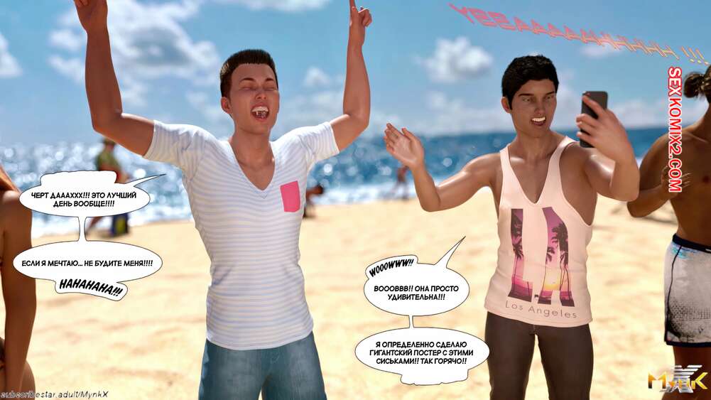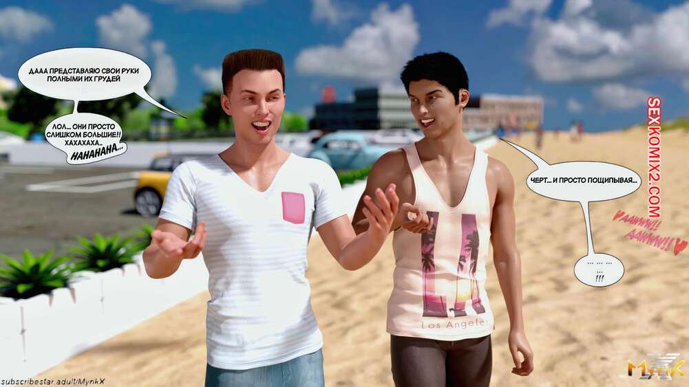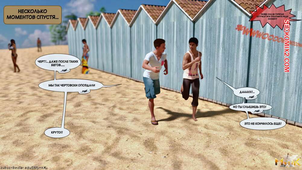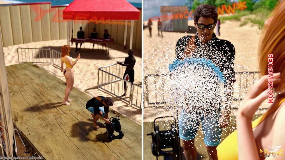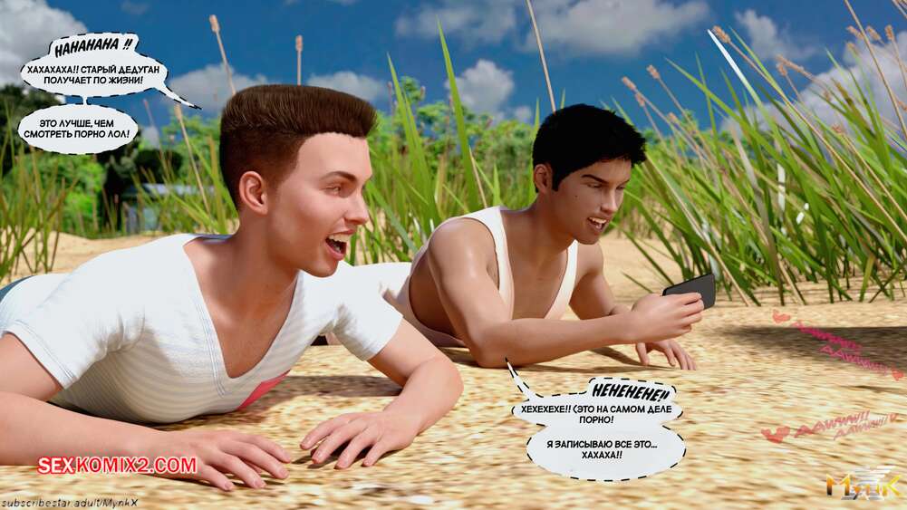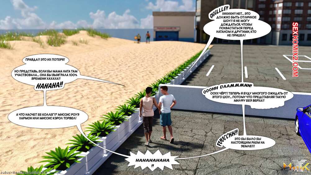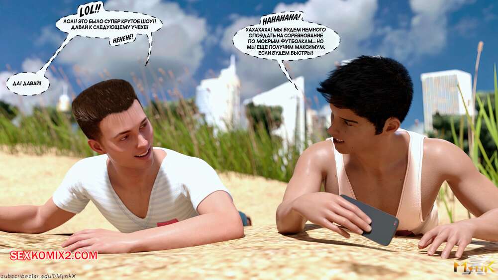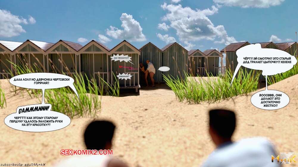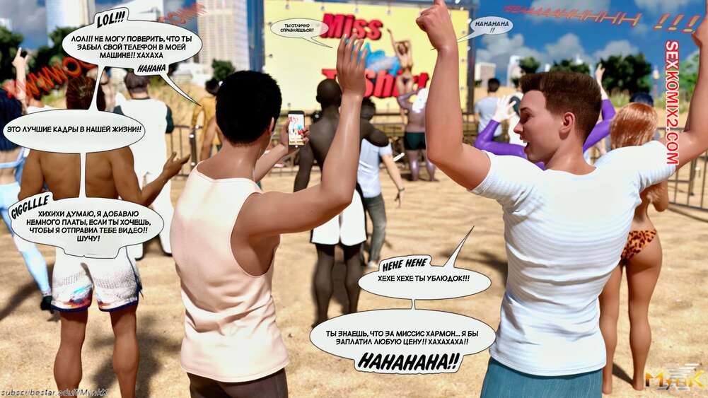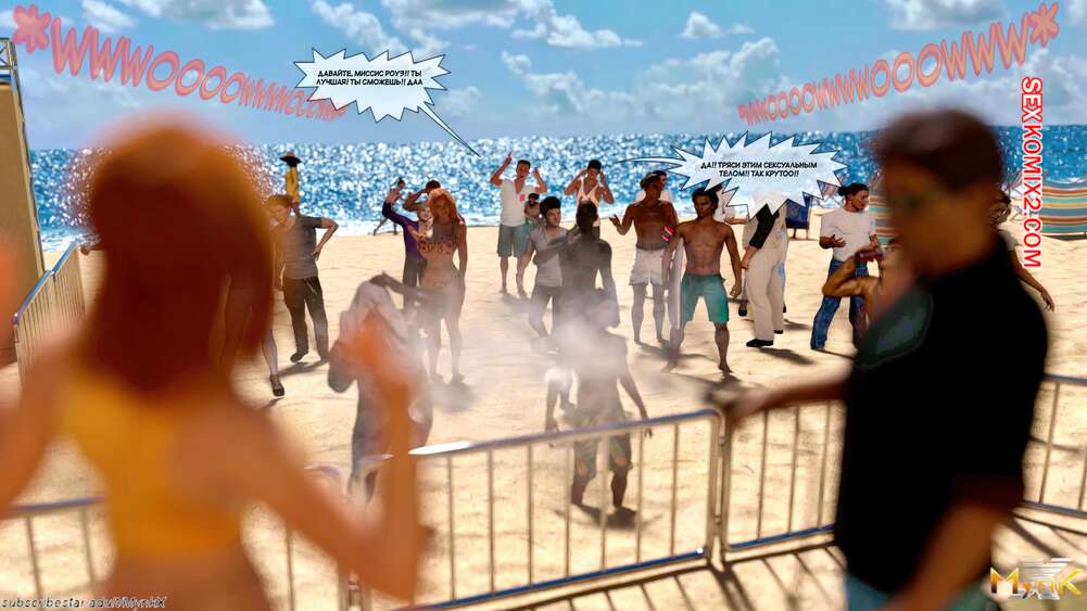 Порно комикс Конкурс. The Contest. Mynkx. Три горячие подруги милфы отправились на пляж, чтобы расслабиться. Сперва блондиночка уединилась со стариком и дала трахнуть свою пизденку, после чего девушки приняли участие в конкурсе мокрых маек.
