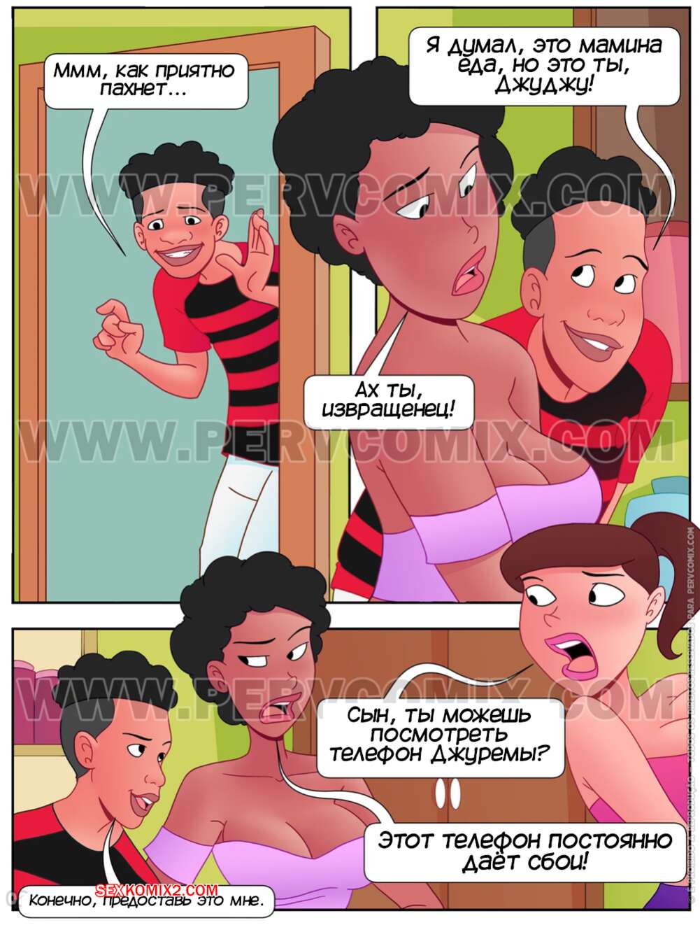 Порно комикс Семейка из трущоб. Часть 4. Familia da quebrada. PervComix У красотки сломался телефон и ее подруга просит сына посмотреть в чем дело. Он решает глянуть фотки в телефоне и находит голые фотки Джуджу. Естественно, он решил подрочить.