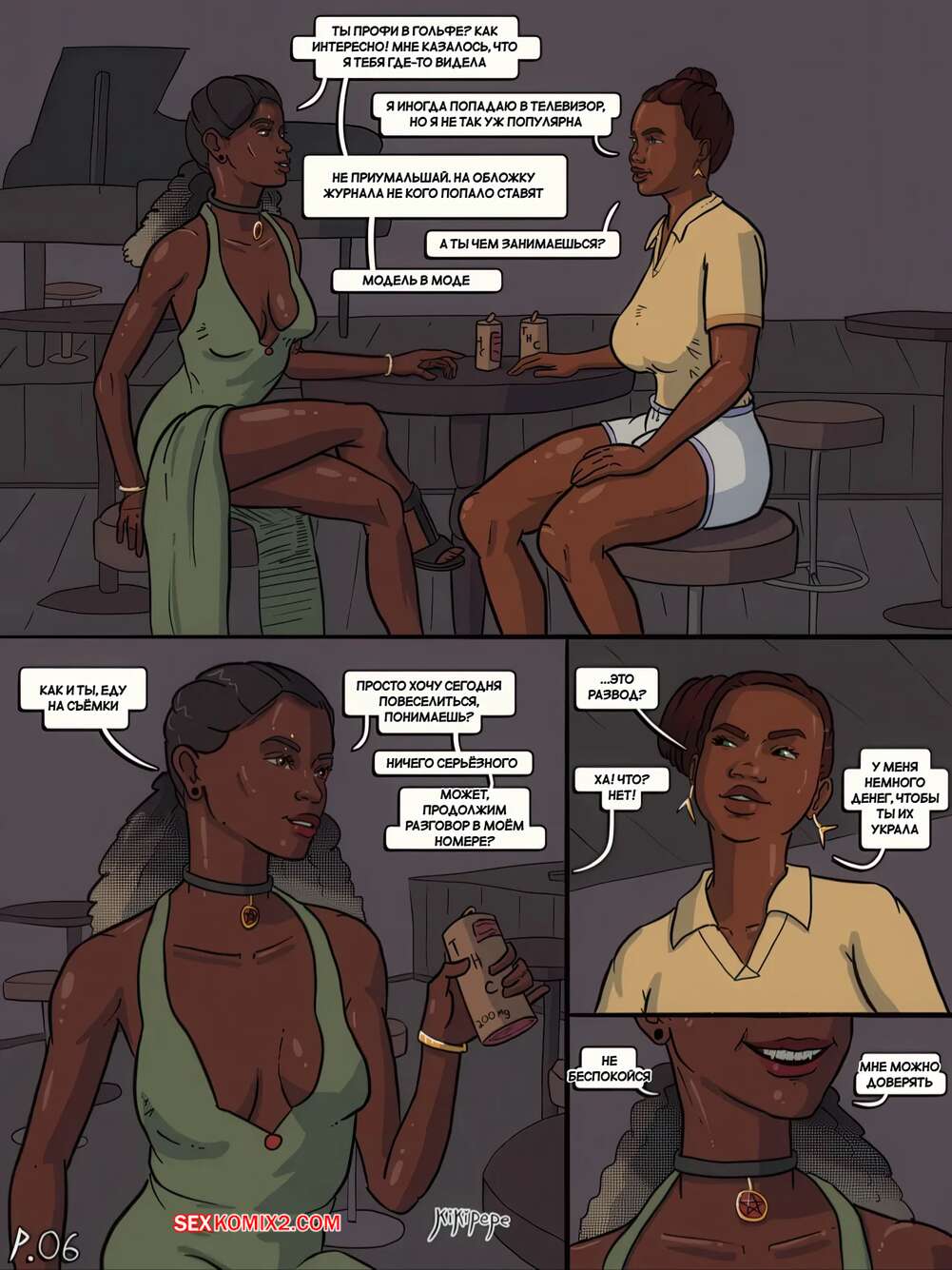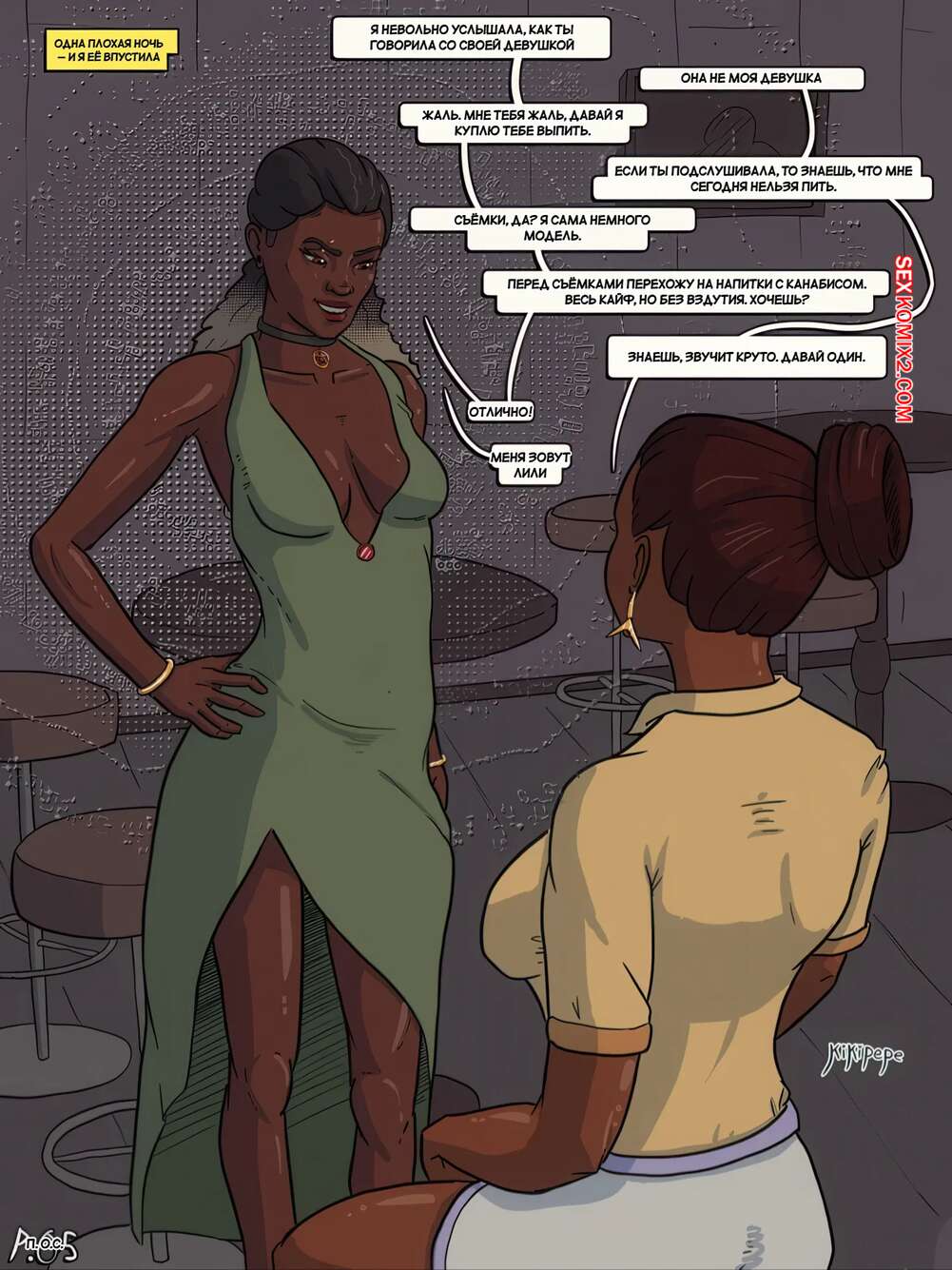 Порно комикс Поклоняйся мне. Julies Addiction Side Story. Worship Me. Kikipepe. Темнокожие красотки познакомились в баре и под влиянием алкоголя решили продолжить ночь вместе. Девушки разделись и показали свои шикарные тела, после чего стали ласкать друг дружку.