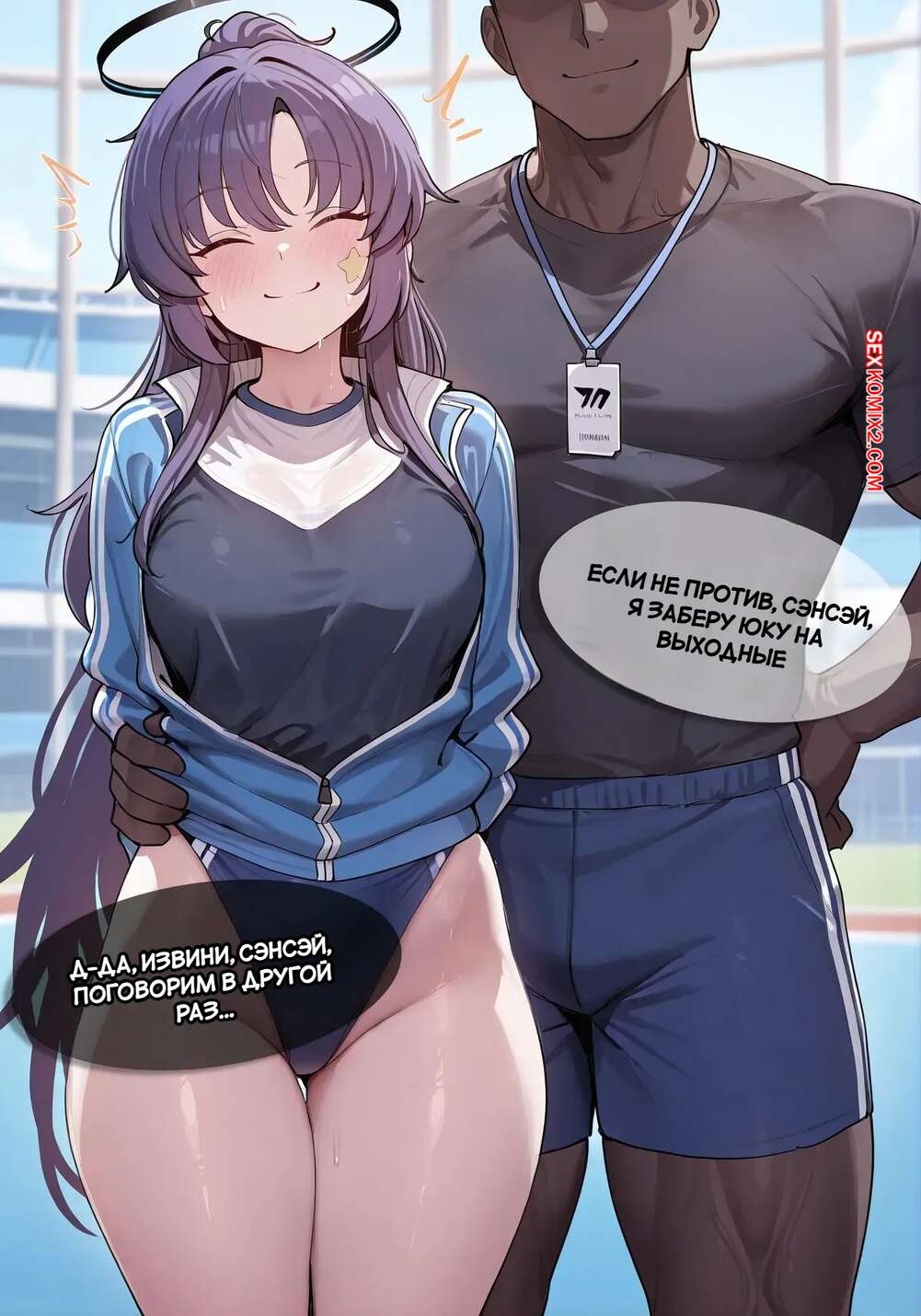 Порно комикс Юука в спортивке. Tracksuit Yuuka. SnowBunnyWaifus. Горячая брюнетка привлекла внимание темнокожего парня на уроке физкультуры и он решил подкатить к ней свои яйца. Парень дает девушке отсосать большой хуй, после чего хорошенько ее трахает.