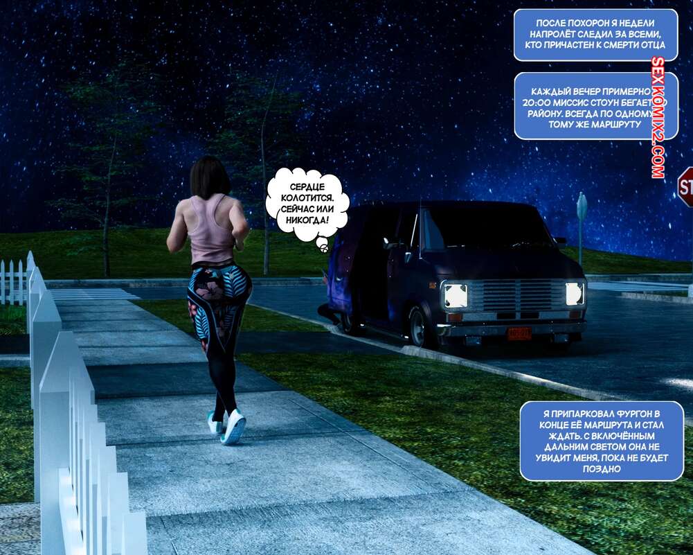 Порно комикс Расплата. Часть 1. Payback. Deathstrike2. Горячая милфа вышла на пробежку поздним вечером и парень использовал момент, чтобы похитить ее. Он привез ее в дом и провел красотку в подвал, где раздел ее, чтобы воспользоваться ее шикарным телом.