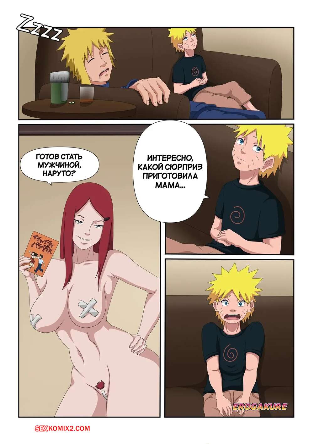 Порно комикс Наруто. День рождения Наруто. Narutos Birthday 2025. Erogakure. У Наруто день рождения и Кушина приготовила ему особый подарок. Красотка разделась и возбудила сына своим шикарным телом, после чего раздвинула ножки и дала себя выебать.