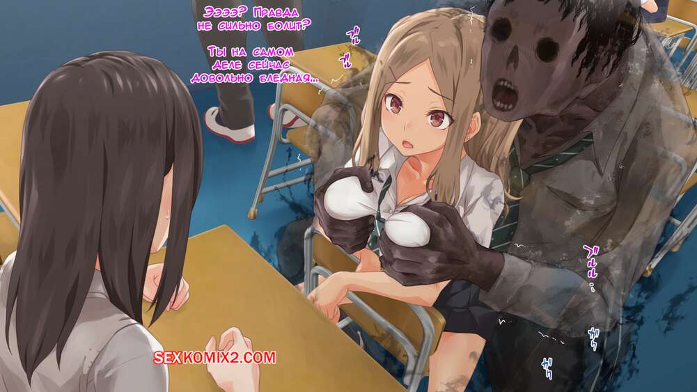Порно комикс Быть девушкой медиумом совсем не просто. Часть 2. Toji Во время урока горячая брюнетка почувствовала присутствие призрака зомби. Он залез под парту и стал лизать пизденку девушки, после чего вставил в нее свой большой хуй.