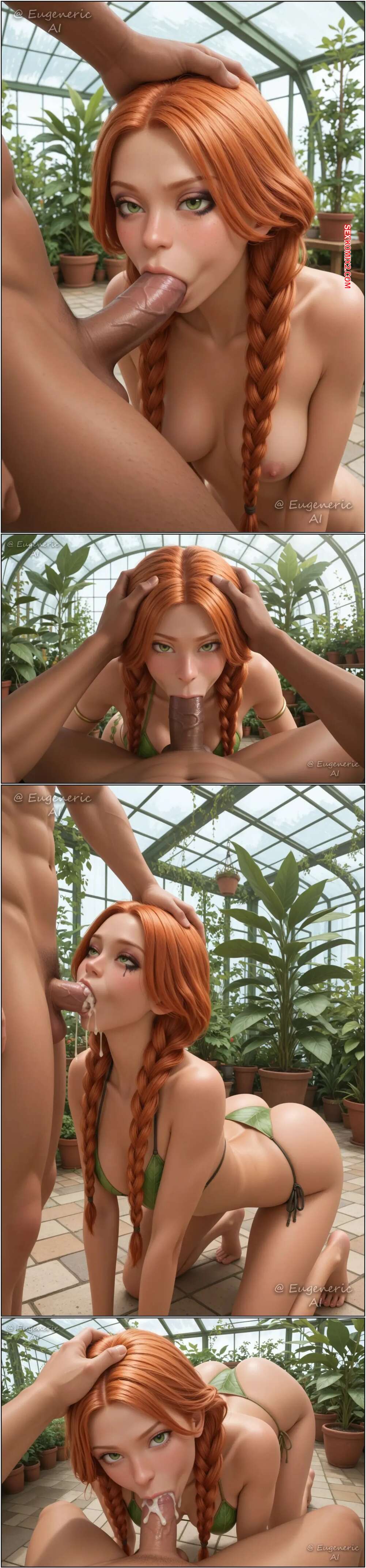 Порно комикс Professor Mirabel Garlick. EugenericAI Рыжая красотка уединилась с парнем в теплице, желая повеселиться. Она встала на колени и отсосала его большой хуй, после чего раздвинула ножки и дала себя выебать.