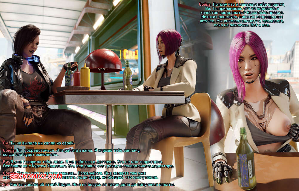 Порно комикс Cyberpunk 2077. Сборник миниисторий. Часть 3. Dinoboy Сборник мини историй с возбужденными красотками с большими членами. Они возбуждены и соблазняют своих подруг, чтобы они отсосали их хуи и дали себя хорошенько выебать.